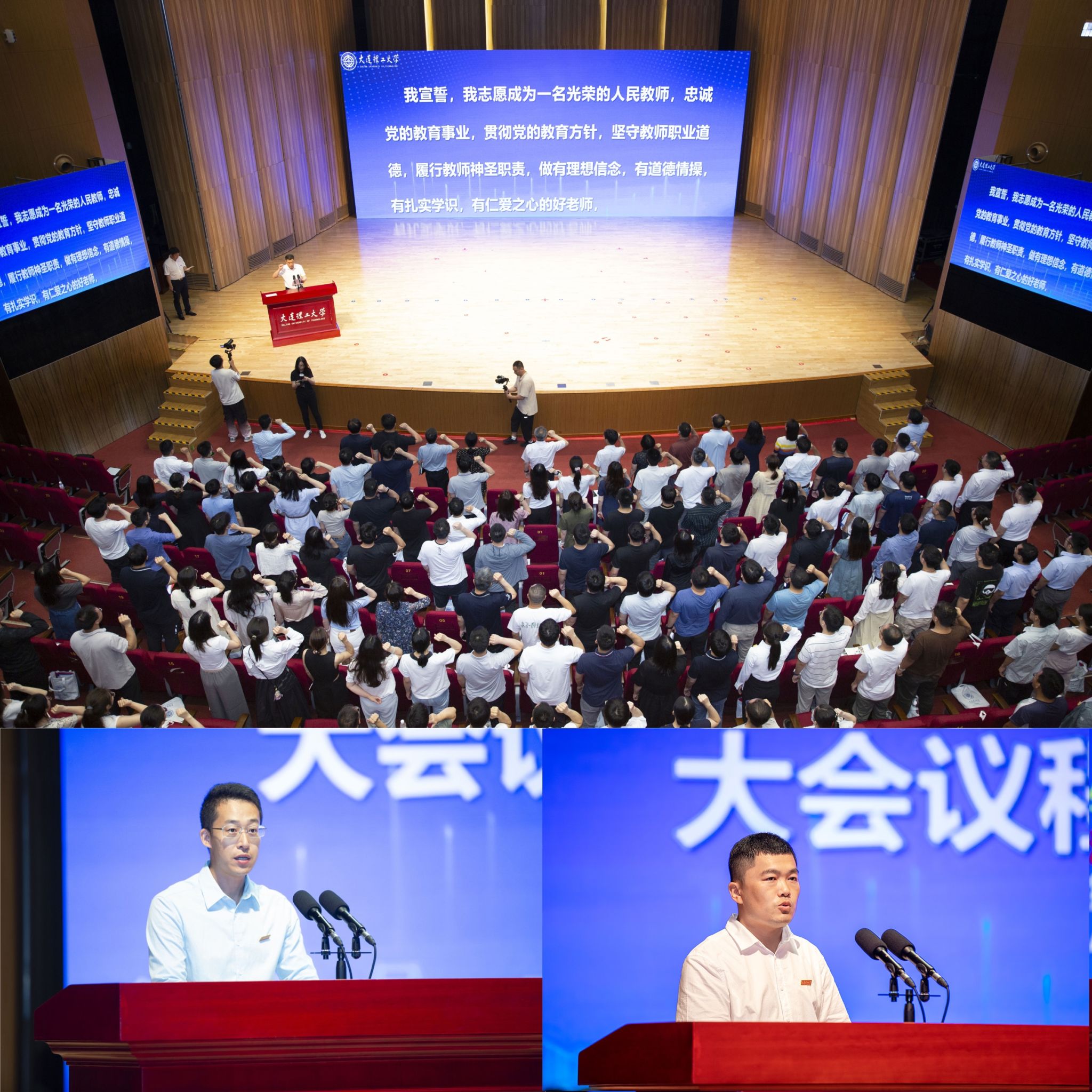 会上,贾振元为新教工代表颁发入职证书。国家杰出青年科学基金获得者、辽宁五一劳动奖章获得者、控制科学与工程学院王伟教授作为领誓人,带领新教工宣誓。在职教师代表、化工学院研究员孟银杉,新入职教师代表、机械工程学院郑焕玺教授先后发言。