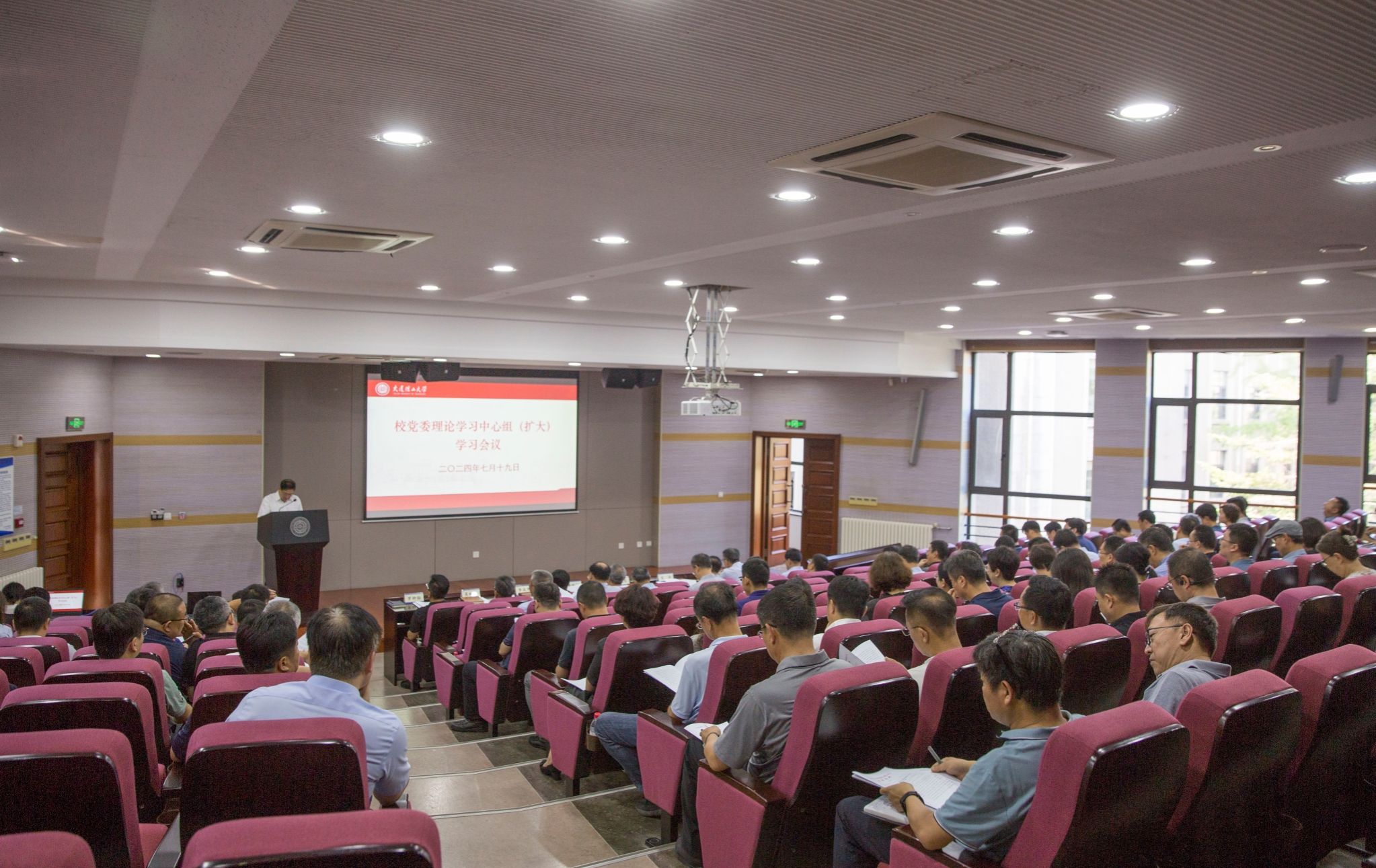 7月19日上午,学校召开党委理论学习中心组(扩大)学习会议,第一时间传达学习党的二十届三中全会精神,专题学习习近平总书记在二十届中央政治局第十五次集体学习时的重要讲话精神。校党委理论学习中心组成员,机关各职能部门、直附属单位负责人,各二级党组织书记,各学院(学部)院长、部长参加会议。党委书记项昌乐主持学习。