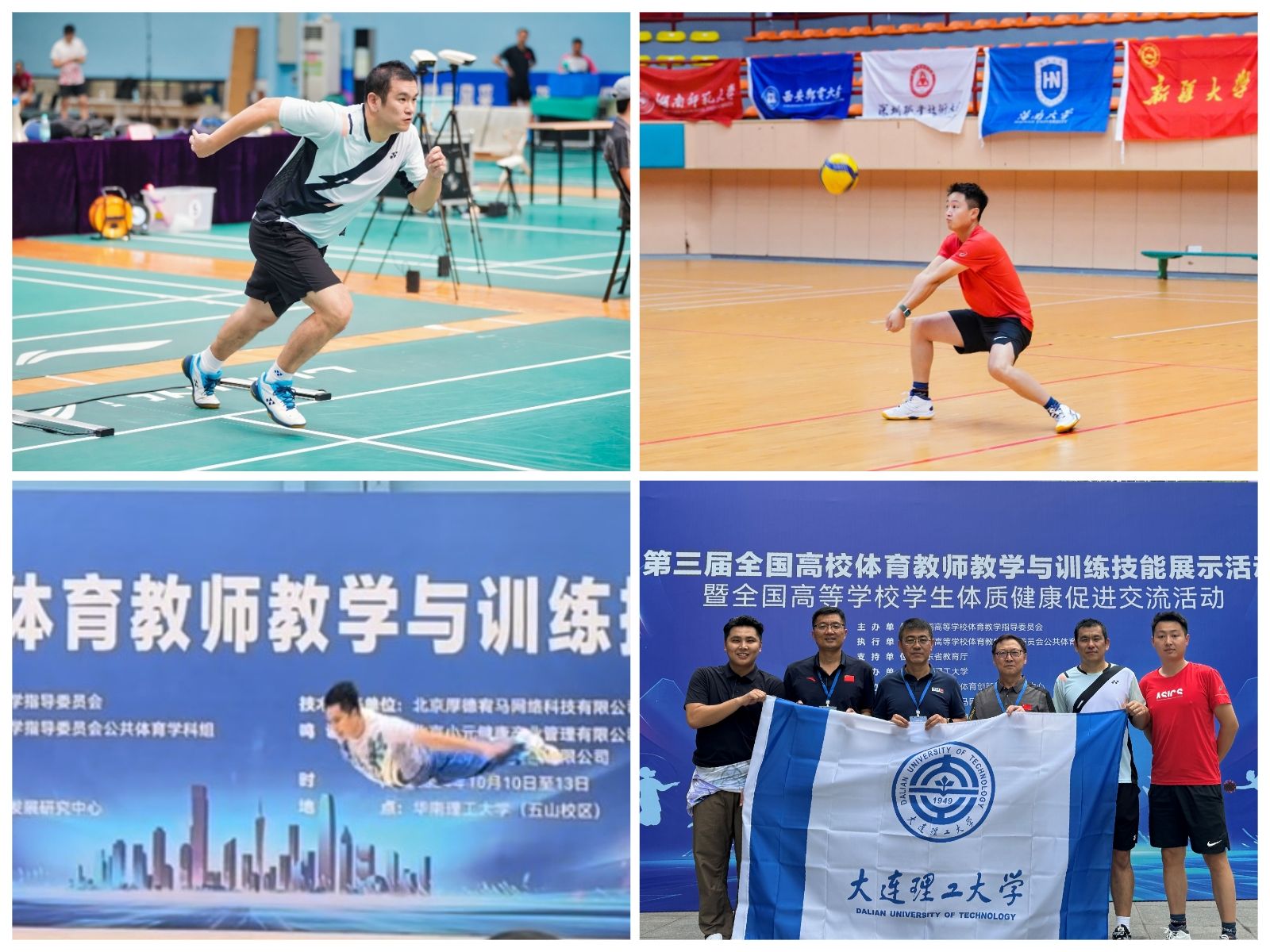 为强化高校体育工作,推进高素质、专业化、创新型体育教师队伍建设,10月10日至13日,教育部全国高等学校体育教学指导委员会在华南理工大学举办了第三届全国高校体育教师教学与训练技能展示活动。本届活动邀请了来自全国14个省市、自治区的103所知名高等院校共同参与,共有各校推荐的214名优秀体育教师同场竞技,展示新时代高校体育教师的风采。展示活动设定了排球、羽毛球、操舞类三个项目,考查教学(指导)设计与实践、基础体能、专项体能和技能。我校体育与健康学院教师在本次大赛中成绩优异,载誉而归。