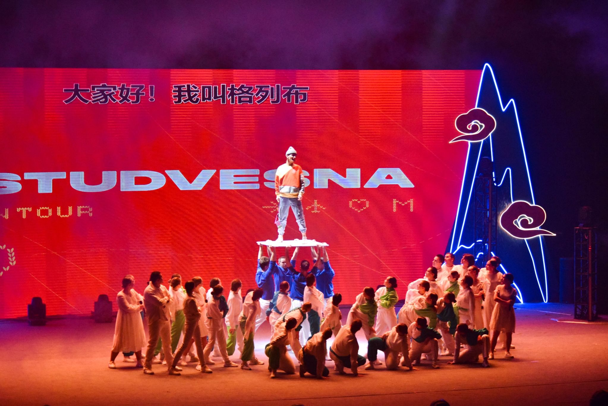 由我校学生表演的舞蹈《玉兰花开》开启了晚会序章,展现了青春的蓬勃力量。俄罗斯青年踏着轻盈欢快的舞步,通过独白和舞蹈的形式讲述了一段跨越国界的情缘。杂技《追梦》融合美学和技术元素,为观众带来视觉上的震撼和享受。民俗歌舞《我》与《觉醒》以鲜明的节奏跃动,充分表现了俄罗斯民族音乐的独特韵味。俄罗斯传统歌舞表演《卡林卡·马林卡》以轻快的旋律和朗朗上口的歌词将全场氛围推向高潮。空竹表演《水瓶座时代》将传统技艺与现代舞蹈巧妙结合,展现出浓郁的艺术魅力。