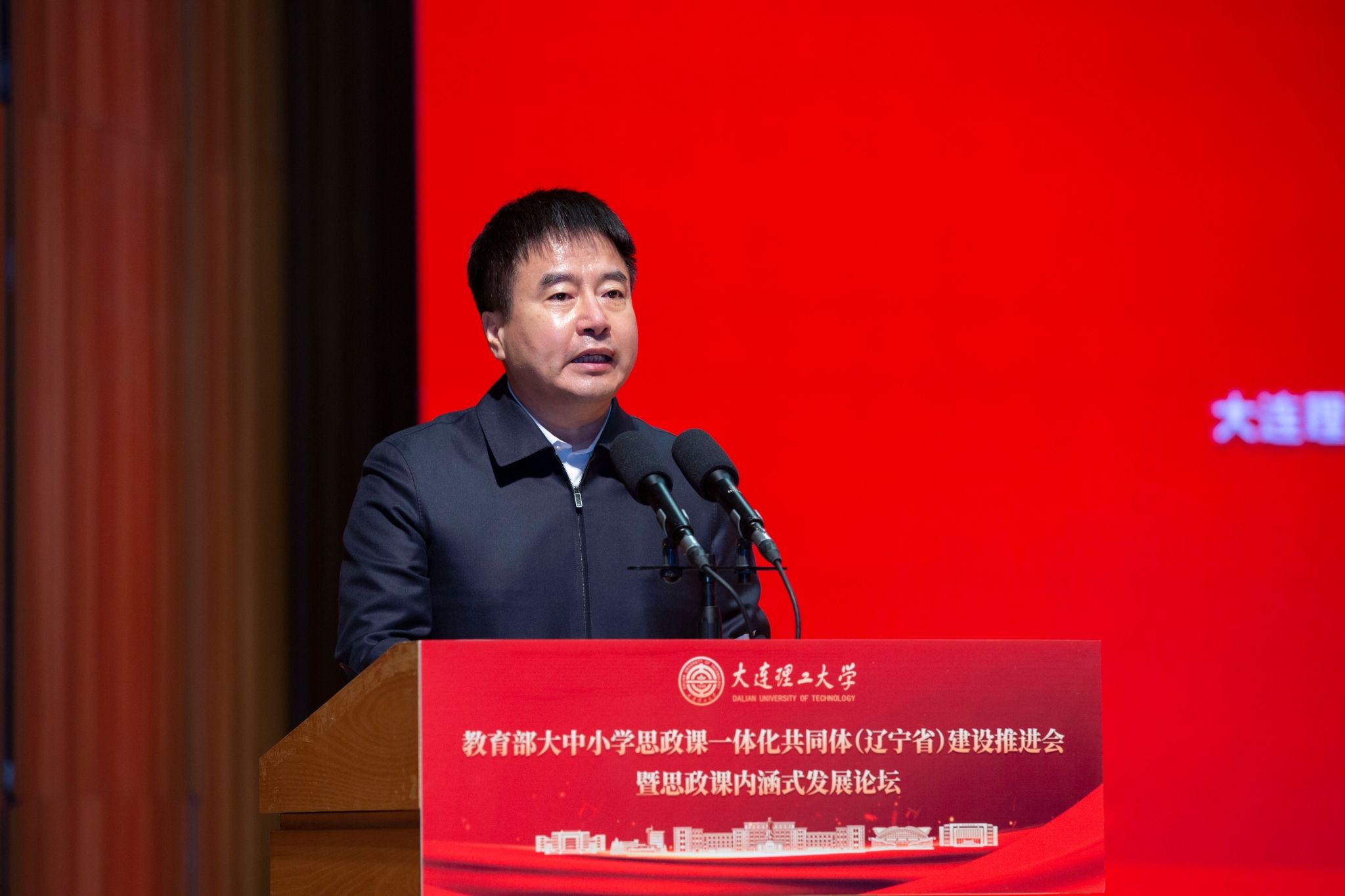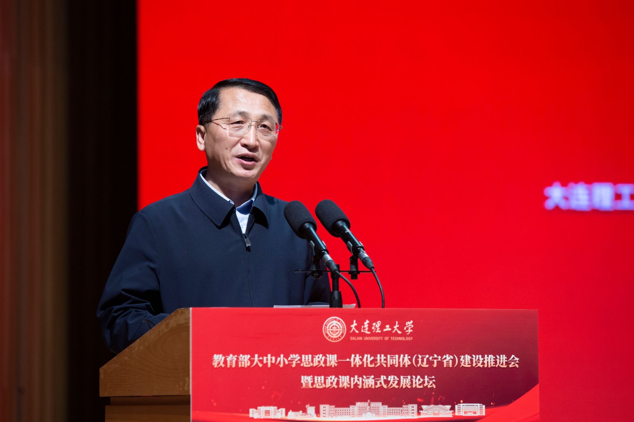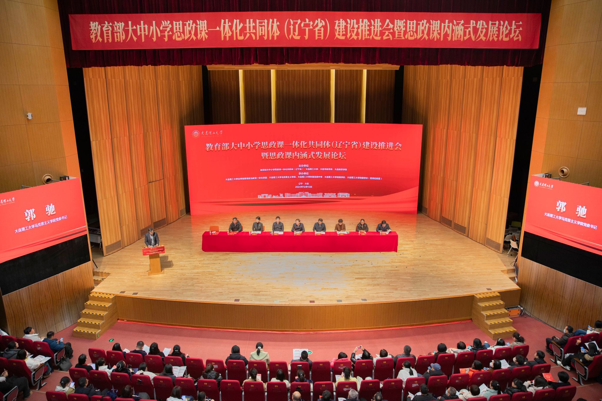 12月13日,教育部大中小学思政课一体化共同体(辽宁省)建设推进会暨思政课内涵式发展论坛在我校举办。我校党委书记项昌乐,辽宁省教育厅党组成员、省委教育工委专职副书记李显通,大连市委常委、市委宣传部部长、市教育工委书记郭铁钧,大连市委教育工委专职副书记杨丽杰出席会议并讲话。开幕式由马克思主义学院党委书记郭驰主持。
