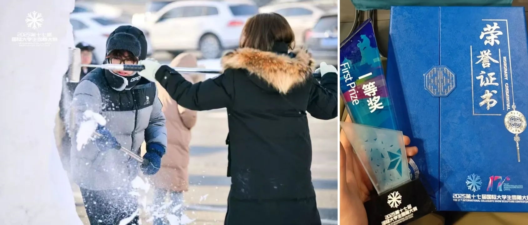 1月7日,为期4天的第十七届国际大学生雪雕大赛在哈尔滨工程大学落幕。我校学子创作的雪雕作品《逐梦冰雪,燃情未来》斩获一等奖!