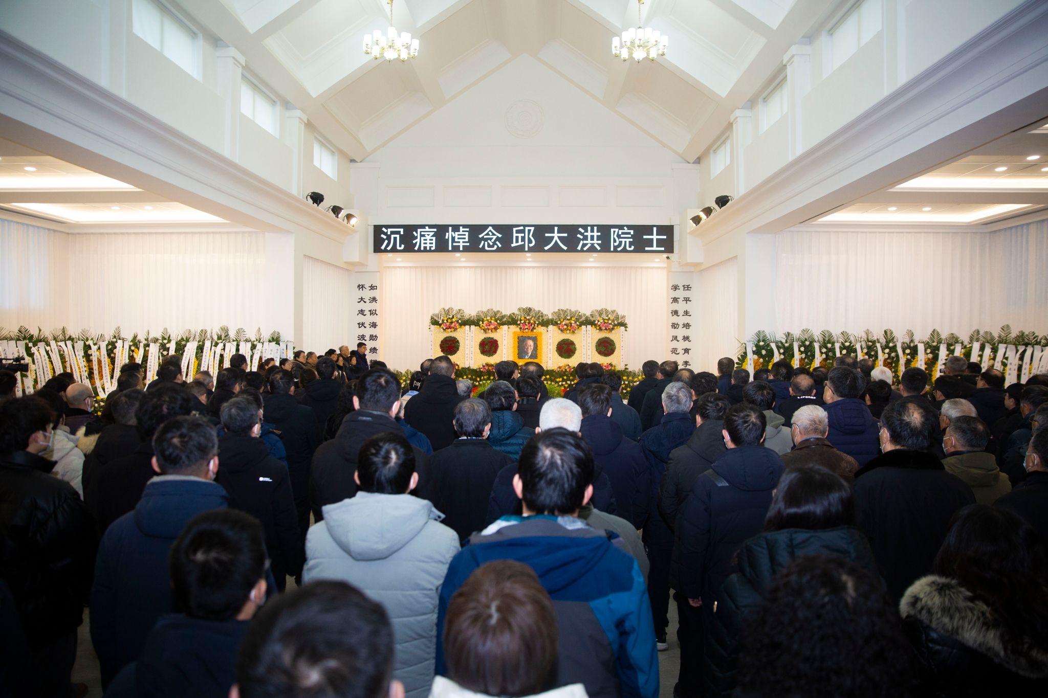 告别仪式现场,大连市委常委、市委宣传部部长郭铁钧,中国科学院沈阳分院分党组书记、院长毛志远,辽宁省委组织部部务委员王玉辉,辽宁省委统战部副部长宋航,中国大连高级经理学院常务副院长薛徽,中交集团东北区域总部书记朱连宇,大连市委统战部分管日常工作的副部长、一级巡视员赵也,大连市教育局局长鞠振伟,大连市科学技术协会党组书记史明强,辽宁省欧美同学会秘书长杨新武,大连市委组织部副部长任洪成,大连市科技局副局长杨怀军,大连市委原常委、统战部原部长董长海,大连民族大学副校长冯林,中国科学院大连化学物理研究所副所长黄延强,南京水利科学研究院原副院长左其华,湖州市科协党组成员吴国胜以及大连市、湖州市有关部、委、办、局领导,九三学社大连市委员会领导;大连理工大学校领导项昌乐、贾振元、宋丹、李成恩、姚山、罗钟铉、张弛、王博,党委原书记张德祥,原校长、中国工程院院士郭东明,中国科学院院士彭孝军、郭旭,离任老领导王连生、姜德学,学校总会计师冯宝军、党委常委王志伟、校长助理康旭东,各学部学院、各部门主要负责人,教师代表、学生代表、校友代表,家乡代表等各界人士以及邱大洪院士的亲属和生前友好、学生等怀着沉痛的心情,前来为邱大洪院士送行。