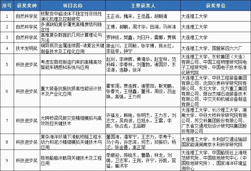 大连理工大学牵头获辽宁省科学技术奖一等奖项目
