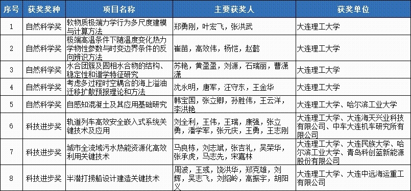 大连理工大学牵头获辽宁省科学技术奖二等奖项目