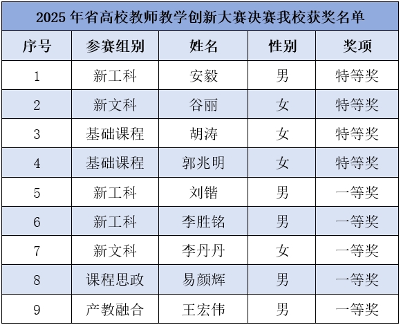 近年来,我校通过组织专项培训、搭建教师发展平台等措施,持续强化教师教学能力建设。此次赛事成绩既是对教师个人创新实践的肯定,也彰显了学校在“四新”建设、课程思政等领域改革的阶段性成果。未来,学校将进一步发挥大赛示范效应,持续锻造教师教学新优势,为高质量人才培养提供坚实支撑。
