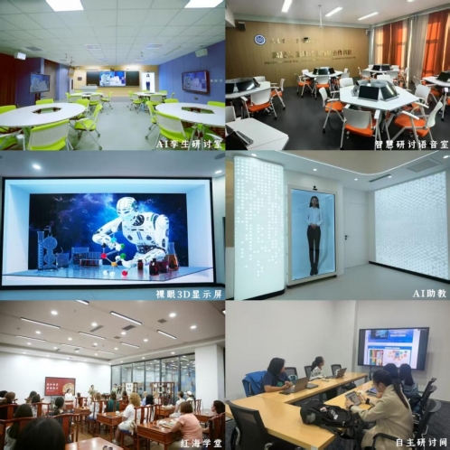 校区坚持以师生为中心,着力提升学习生活条件。深化国家教育数字化战略行动,积极探索运用人工智能助力教育变革,构建可视化、交互式学习新模式。2024年底,未来学习中心体验区完成阶段性建设并投入使用,规划一体化建设智慧教学研讨室、AI孪生研讨室、AI孪生教师、AI助教、未来学习空间等,为师生提供更加便捷、高效的教学和学习方式,入选首届数字教育示范案例标杆案例(全国高校共入选44项标杆案例),助力学校获评优秀组织单位奖(全国15个,其中高校7个)。同时,校区全新升级打造智慧研讨语音教室,为外语课程和小班讨论课提供一流教学环境,为培养具有全球竞争力的高素质人才提供了坚实保障。此外,在图书馆盘锦校区分馆,精心为学子们打造了具有中国传统特色的“红海学堂”,提供配有智慧屏幕等先进设施的“讨论共享空间”。这些空间的打造,不仅满足了校区师生多样化的学习需求,更激发了师生学习潜能和创新精神。