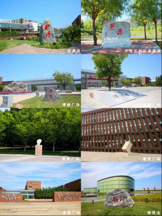 校区高度重视充分发挥利用校园标志性场所的文化育人功能。2024年8月建成校区校史文化展厅,成为学校授牌的首个校史文化育人基地。校区广场水系命名和标识设计,与校史文化育人基地一同部署推进,于去年12月24日确定了四个广场和两处水系的命名,并于6月13日正式启用。博雅广场上十种不同书法字体的“博雅”二字,将博雅教育理念与广场实体景观完美结合,倡导校区学子成为全面发展、德才兼备的未来领袖;晨晖广场的古典日晷标识,融时间哲思于校园空间,提醒校区师生时刻不忘争分夺秒加速卓越;集贤广场的中式印章标识,四周镌刻大工校风校训,底部阳刻“集贤”二字,饱含了对青年学生成才报国的殷切希望;青春广场旁挥动“飘带”的“青春”二字,勉励校区学子激扬青春、蓬勃向上;思源河与开发区校区的思源湖遥相呼应,命名标识上的“思源”二字,出自我校主要创始人屈伯川老校长的手迹,倡导校区学子传承大工红色基因,不忘饮水思源;锦理池取自大连理工大学盘锦校区的“锦”“理”二字,谐音“锦鲤”,也映衬池中悠然游弋的锦鲤,饱含对校区学子的美好祝愿。