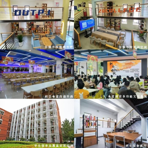 在改善学习条件的同时,校区体系化推进宿舍、食堂等生活条件的改善。落实学校“学域培养、书院育人”统一部署,于2024年暑假完成自强书院首批条件改造项目,精心打造了自由开放、舒适温馨的社区学习生活环境。书院内设有“锦绣书吧”“遇见食佳”“灵动空间”等多元功能区,定期开展读书分享会、教授午餐会、学术研讨、主题演讲、艺术课程等活动,为学生提供丰富的文化交流空间。同时,校区实现宿舍空调全覆盖,完成了食堂的装修改造,丰富餐饮档口,引入非遗小吃等,着力提升学生生活条件。