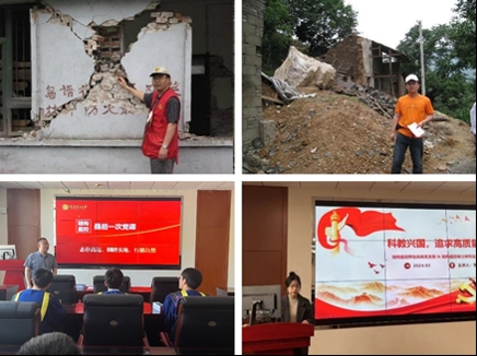 强化国家安全教育,凝心铸魂构建监控防灾思政体系。支部将思政元素有机融入专业课程,构建了监控防灾思政体系。通过案例教学等方式,支部成员坚定了为国家安全事业贡献力量的决心。教师党员积极践行专业使命,深入汶川大地震、莫兰蒂强台风等灾区和一线实践调研,引导学生在工程实践中锻炼本领,为投身祖国防灾事业打下坚实基础。