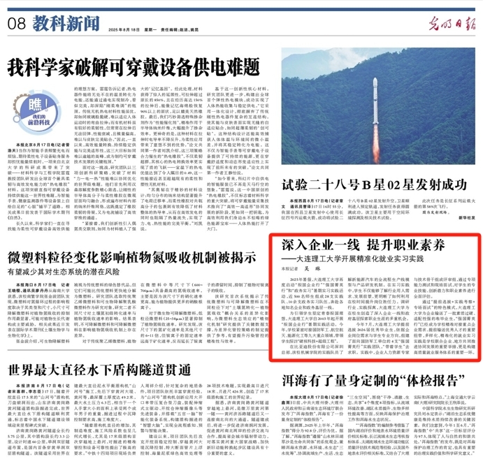 【光明日报】深入企业一线 提升职业素养 ——大连理工大学开展精准化就业实习实践