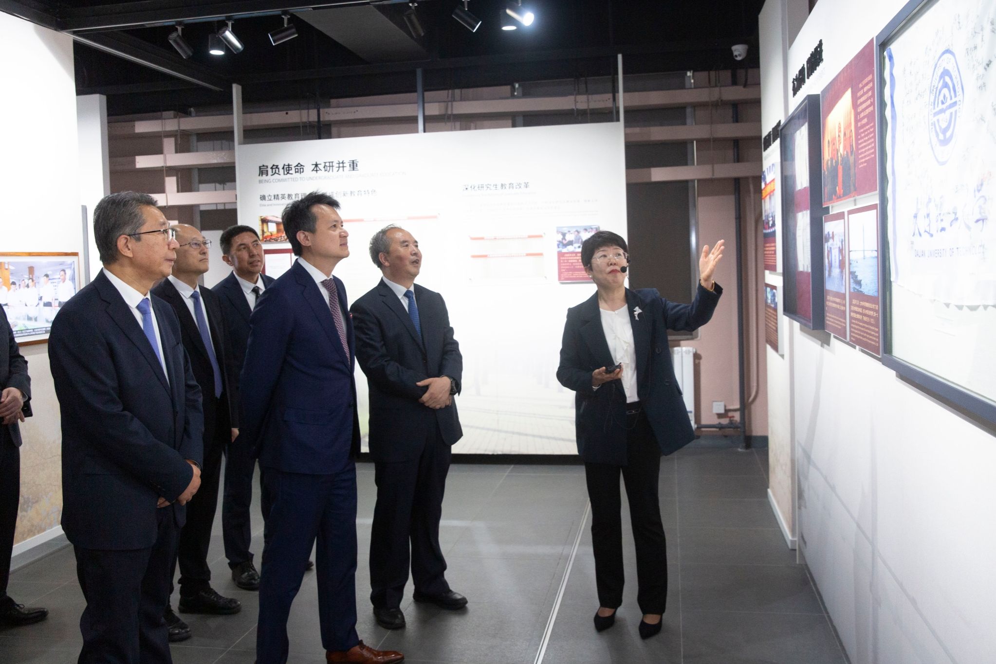 贾振元代表学校向邓鸿森赠送了印有学校校徽的瓷盘,以表感谢与敬意。