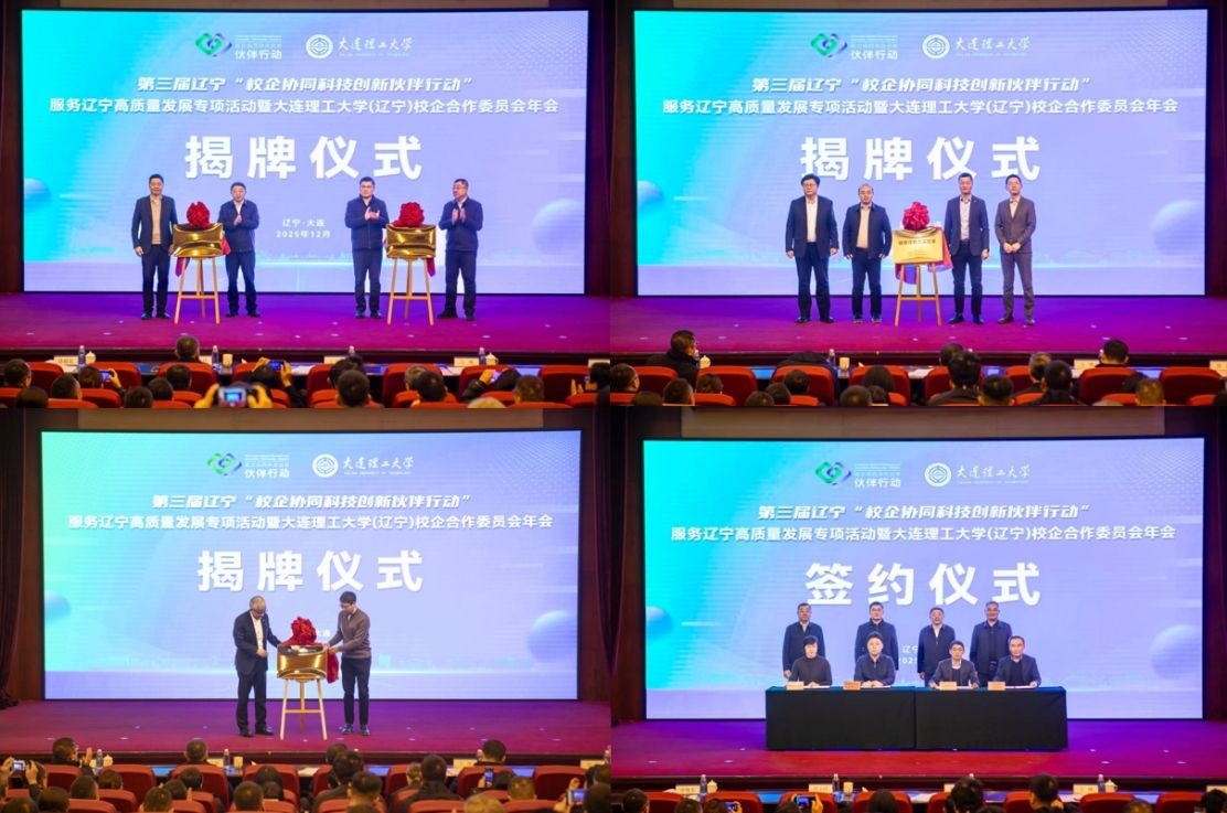 会上,发展抚顺机械设备制造有限公司、辽宁宏图创展测绘勘察有限公司加入校企合作委员会,成员单位增至96家。“大连市人工智能新型工业化院”“大连市新型工业化院”“微控-普汇-大工磁悬浮联合实验室”“冰山-大工冷热装备节能优化与智能控制联合技术中心(UTC)”等4个科技创新平台揭牌成立。大连理工大学与辽宁曙光汽车集团;辽宁石油化工大学与大连聚砜塑料有限公司;辽宁科技学院与大连辰政机电设备有限公司;锦州医科大学与辽宁凯为生物技术有限公司等省内高校、企业签署项目合作协议。
