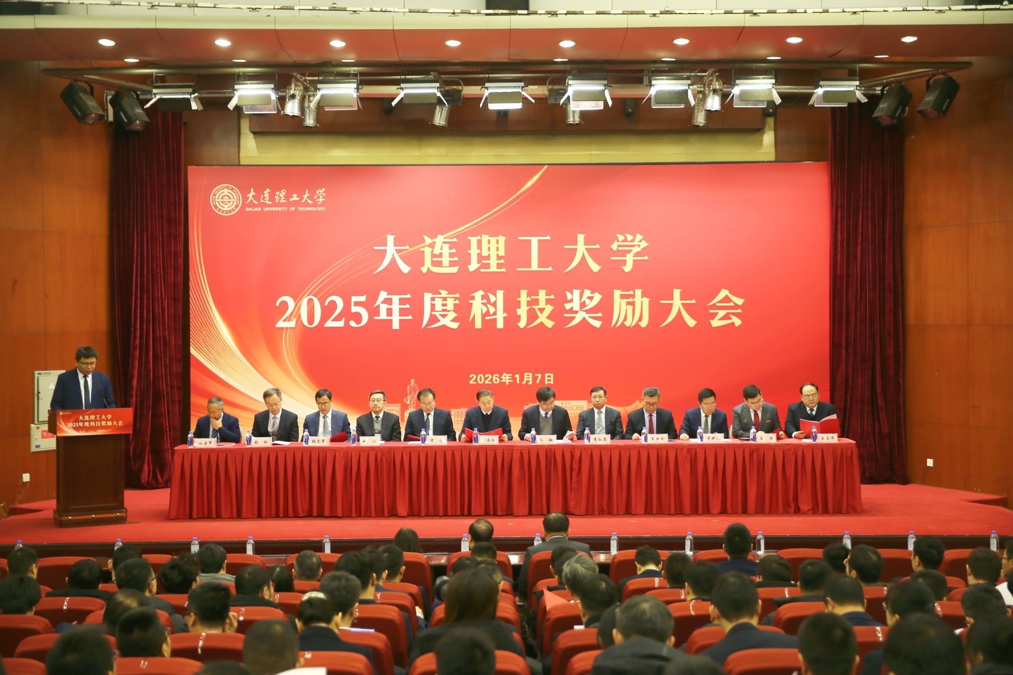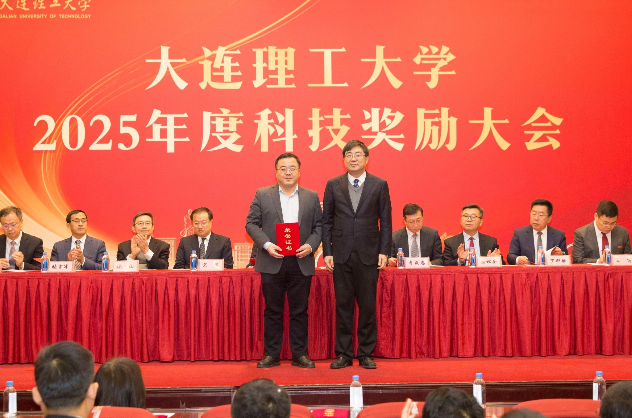 他指出,过去的一年是“十四五”规划圆满收官之年,是学校新优势锻造年。学校科技战线砥砺奋进,推动学校科技事业实现了新跃升,为服务国家战略需求和区域经济社会发展作出了重要贡献。2026年是“十五五”开局之年,也是学校实现跨越腾飞的关键一年,全校上下要强化使命意识、目标牵引,实现科技工作再飞跃,为学校实现战略目标打下坚实基础。要坚持有组织的基础研究和关键技术攻关“双轮驱动”,在国家级创新平台、牵头国家重大项目与培育重大成果上实现新突破;要坚持科技创新与产业创新深度融合,强化与央企和头部企业的战略合作、强化与区域合作;要坚持教科人一体推进,锻造一流方向,建设科技发展、国家战略牵引的学科专业调整机制,更多引育一流人才,进一步推进一流国际化。希望大家牢记“强国建设、大工何为”的初心使命,以受表彰的先进集体和个人为榜样,不畏艰难,聚力攻坚,追求卓越,勇攀高峰,在服务国家高水平科技自立自强的伟大征程中,书写大工新的辉煌篇章。