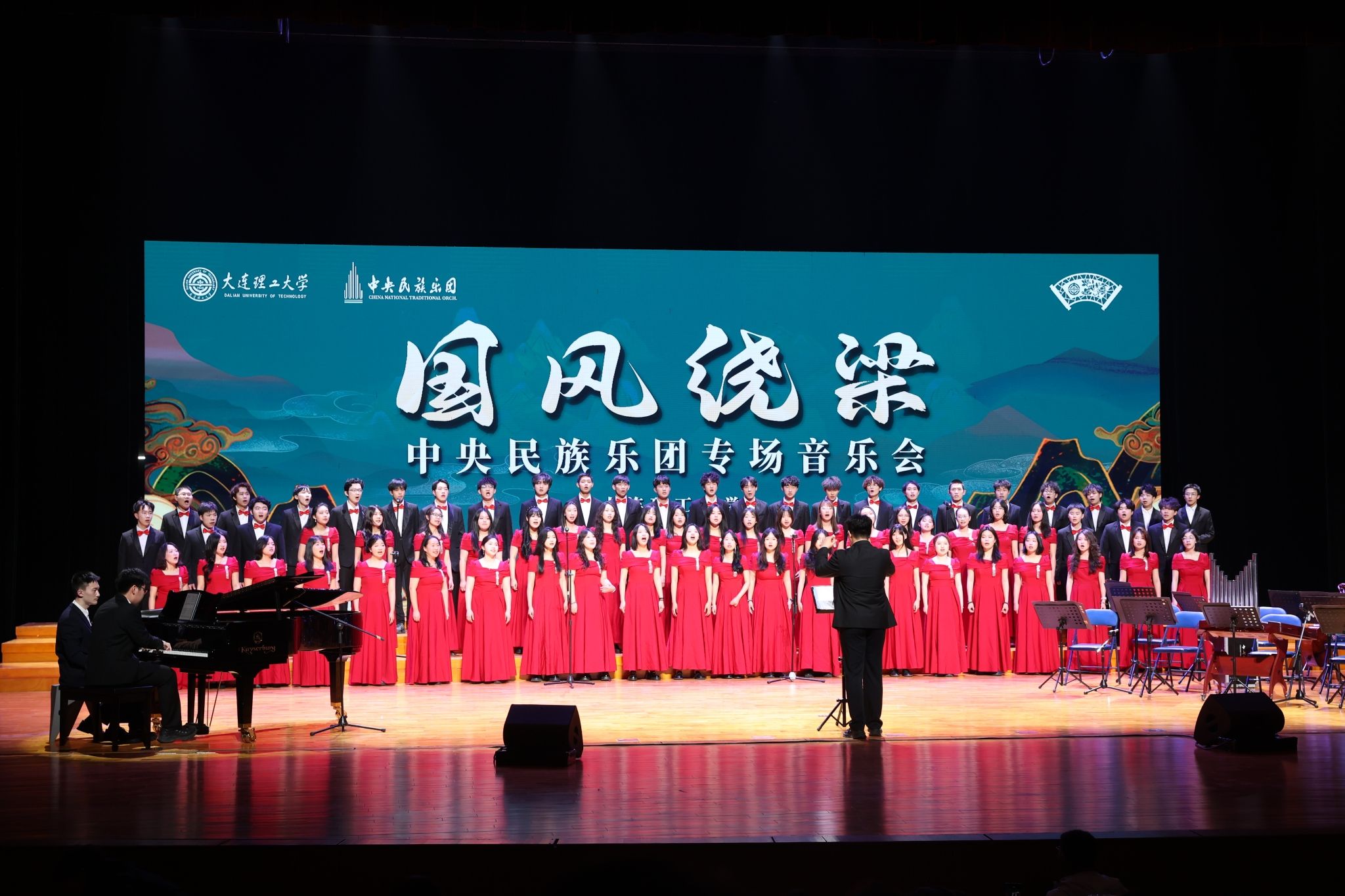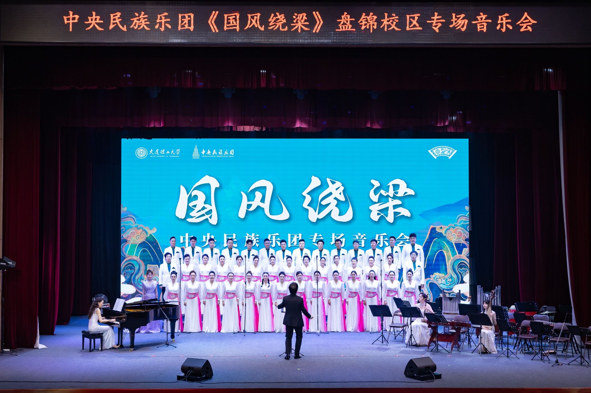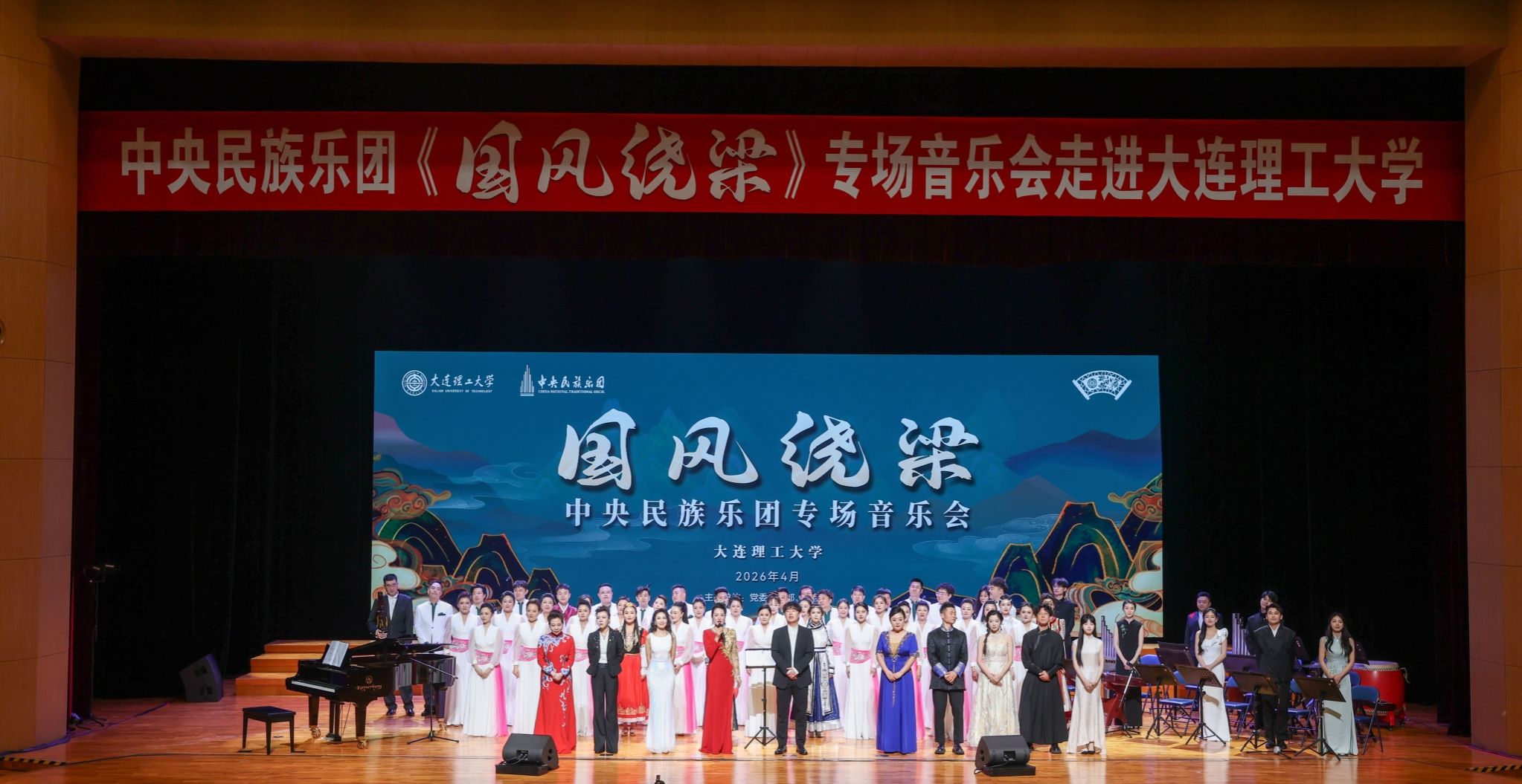 泱泱国风,余音绕梁。4月17日、18日,中央民族乐团《国风绕梁》专场音乐会在学生文化中心剧场、盘锦校区礼堂举行。作为第十五届校园文化节首场文艺演出,本次音乐会以民歌合唱为主体,囊括重唱、器乐合奏等不同表演形式,更有我校学生合唱团带来精彩演绎,将传统艺术与当代审美合为一体,带领师生在领略艺术魅力的同时,深入理解中华民族精神文化内涵。学校领导,机关部处、各学院相关负责人,中央民族乐团相关负责人出席音乐会。