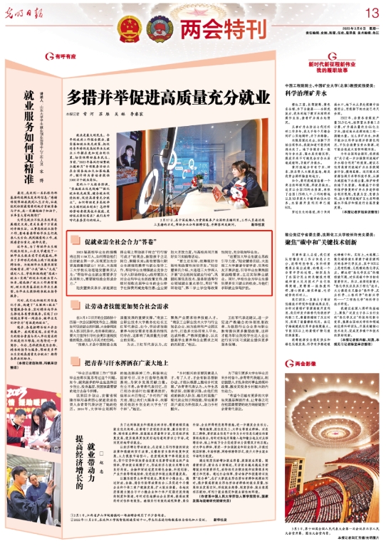 “还要加大毕业生就业思政引导力度。”陆安慧委员说,大连理工大学邀请专家学者、优秀校友开展讲座,引导毕业生聚焦国家战略需求,立足实际择业就业。同时,学校也会为毕业生提供更多实习就业的机会,为他们求职就业保驾护航。