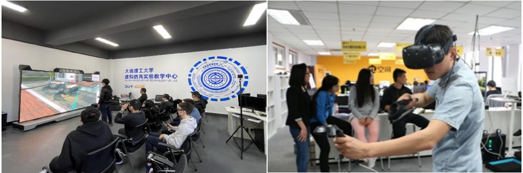 为顺应世界范围内正在掀起的数字化教育“学习革命”浪潮,大连理工大学积极探索并实践数字化、智能化、个性化教学新模式,特别是将先进的VR、AR技术与课堂教学紧密结合,建设了面向全校开放共享的“多人沉浸式教学系统——未来课堂”“IdeaVR虚拟现实造梦空间”等,可支撑教学、实训、创新创业等环节。学生可以通过佩戴VR智能装备,“进入”由知识构建的虚拟场景中,打破线上线下、理论实践之间的传统壁垒。目前,沉浸式未来课堂已在《电工电子》《建筑设计》《微电子工艺学》《土木工程施工》等课程教学中得到充分应用。