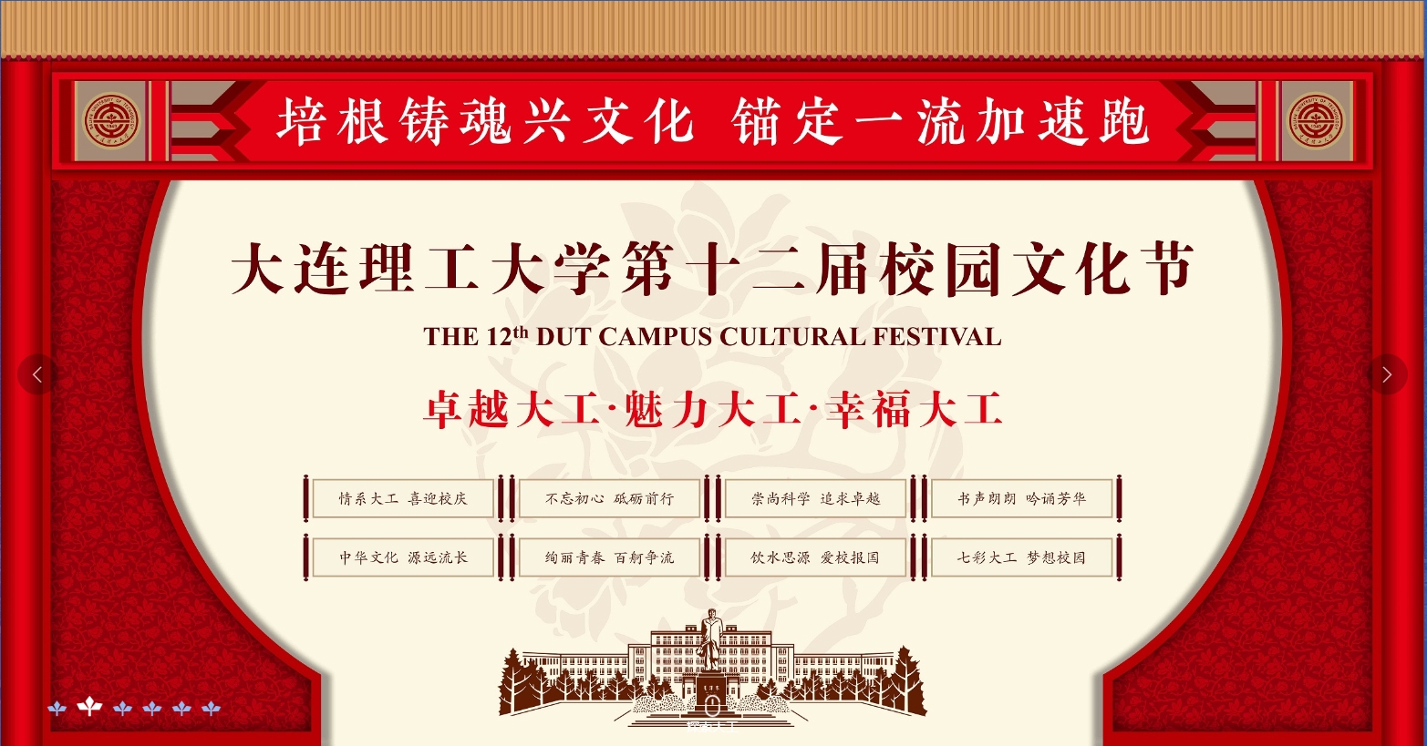 本届校园文化节自4月15日启幕,到5月27日举办文化嘉年华,在一个多月的时间里,学校将以“培根铸魂兴文化·锚定一流加速跑”为主题,紧密围绕“情系大工 喜迎校庆”、“不忘初心 砥砺前行”、“崇尚科学 追求卓越”、“书声朗朗吟诵芳华”、“中华文化 源远流长”、“绚丽青春 百舸争流”、“饮水思源 爱校报国”、“七彩大工 梦想校园”八个子主题,以丰富多样的校园文化活动,为师生提供一场精彩纷呈的文化盛宴。