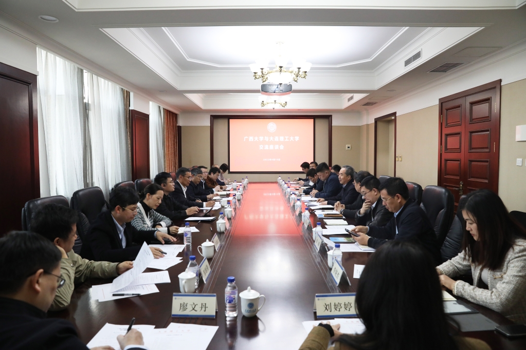 4月19日下午,广西大学校长韩林海一行来校调研,我校校长贾振元在主楼412会议室进行会见交流,副校长张弛以及学校党政办公室(国内合作办)、党委组织部、研究生院、科学技术研究院、建设工程学部、材料科学与工程学院、化工学院等相关负责同志参加座谈。