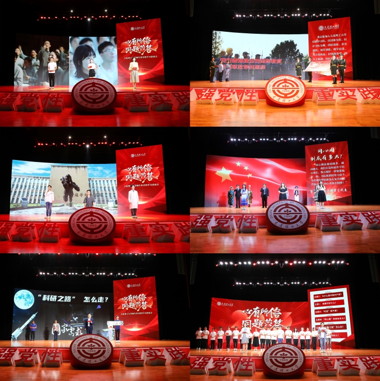 “心有所信 同题共答”师生串并联学习讲演会以习近平总书记系列回信为线索,围绕科技强国、立德树人、坚定信仰、服务人民等主题进行讲演。年逾耄耋仍奋战在育人一线的老教师、学科带头人、青年科学家、思政班主任、专业班主任、辅导员等优秀教师代表与在科技创新、社会实践、志愿奉献、就业创业、文体才艺、社会工作等各领域卓越发展的本硕博优秀学子同台,结合党、国家、学校发展历程与自身奋斗故事,生动回答“为什么是中国共产党”“我要守护什么”“‘吃苦’值不值”“‘同心圆’到底有多大”“‘科研之路’怎么走”“成为怎样的人”等问题,展示教师群体领学范学、学生骨干研学带学、普通学生广学融学的三级串联学习和师生不同群体、班团、支部、教研室不同组织同题共学、同题共答的并联学习成效,激励广大师生要以远大理想自觉接过“接力棒”,以奋斗姿态抓稳“接力棒”,争做奋进中国式现代化新征程的领跑者。