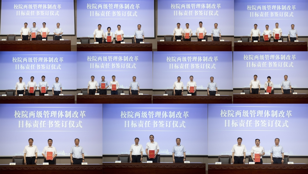 会上举行2023年大连理工大学校院两级管理体制改革责任书签订仪式,化工学院等11家单位签订改革责任书。