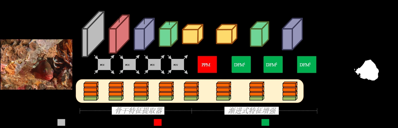 博士生梅海洋作为第一作者与博士生周运铎等人共同完成的研究成果“Distraction-Aware Camouflaged Object Segmentation”致力于解决多尺度伪装目标分割问题。考虑到伪装目标的尺寸通常在很大范围内变化,本文在定位和聚焦伪装目标分割框架下,引入了一个上下文增强模块来增强骨干特征的表示能力,以提供更有辨别性的骨干特征,从而提升伪装目标的定位和聚焦效果;并设计了金字塔定位模块以多尺度的方式实现对伪装目标更加鲁棒的定位;实验证明本文提出的新方法具有优异的伪装目标分割能力,并且本文进行了深入的消融研究和分析,揭示了模型设计的合理性与有效性;最后,本文通过将方法应用于息肉分割任务,验证了模型的泛化能力和实际应用价值。