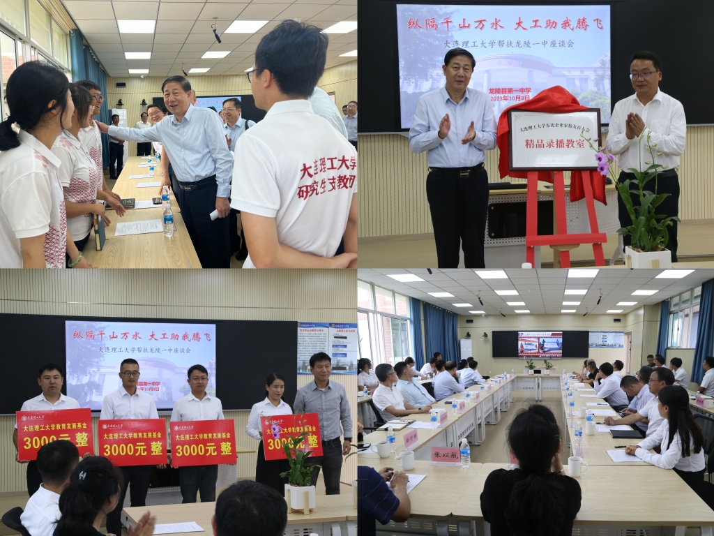 在帮扶龙陵一中座谈会上,项昌乐一行听取了我校对龙陵一中的对口帮扶情况汇报,观看了考入大工的9名2023级龙陵一中学子制作的感谢视频,向优秀班主任颁发了奖教金,项昌乐与牛永东一同为大工校友集资158万元建设的龙陵一中智慧教室和录播教室揭牌。
