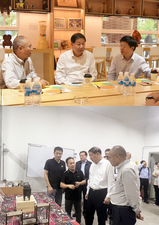 项昌乐一行调研了学校对口支援高校保山学院,实地考察了建艺学院对口支援的保山学院艺术设计与珠宝学院国家级众创空间及实训中心,在实训室与我校在读博士、保山学院在职教师张东强和马文娟亲切交流。调研组参观了位于学校图书馆的滇西民俗博物馆,详细了解了学校发展历史、发展定位、学科专业建设、人才培养、社会服务等方面的情况。王永全、保山市副市长高康、保山学院院长褚远辉等陪同调研。