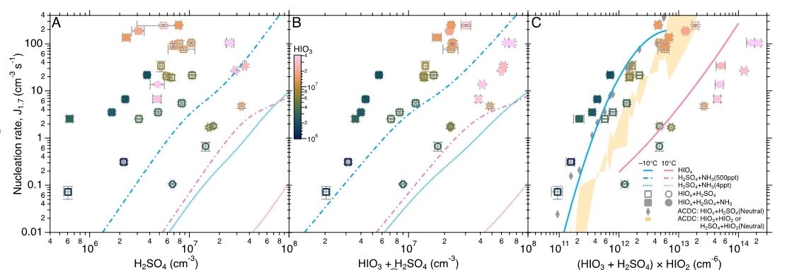 图1碘酸-亚碘酸-硫酸(-氨气)机制的颗粒物形成速率