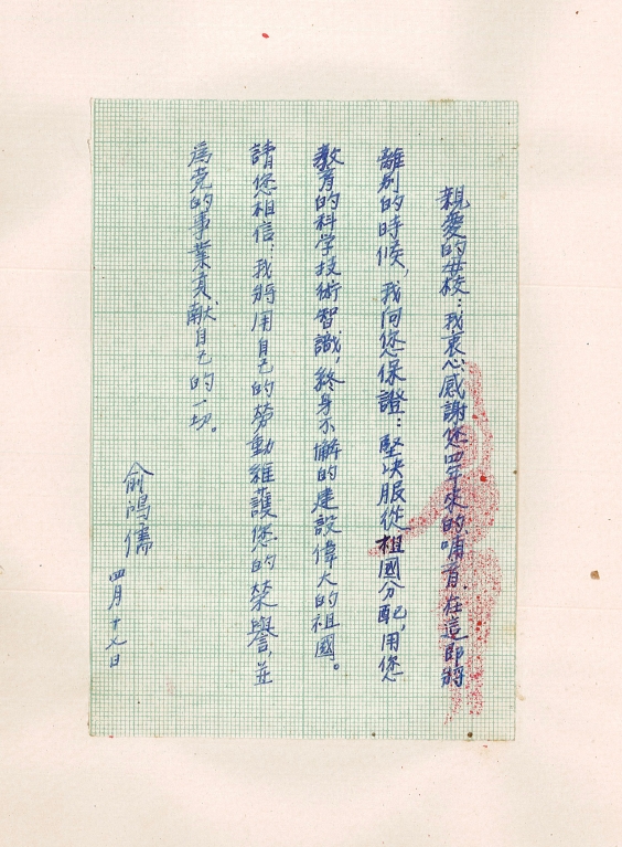 这封“决心书”表达了俞鸿儒为祖国奉献终身的决定。而这60年来,他也用自己的实际行动证明了自己的承诺。