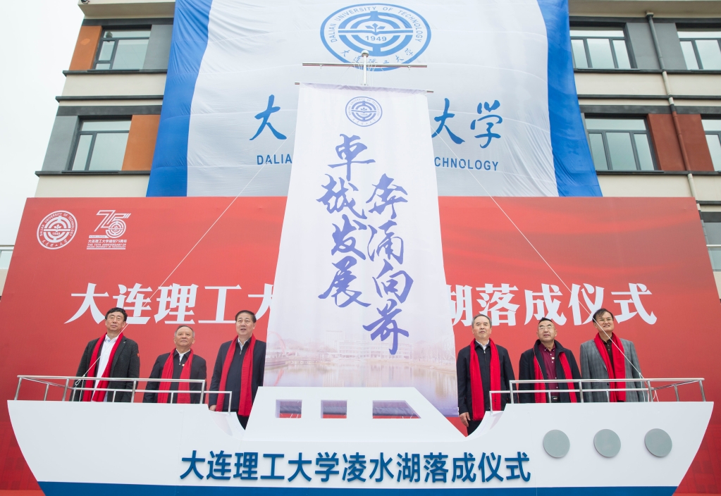 4月15日,在学校第75个建校日,凌水湖落成仪式举行。校党委书记项昌乐、校长贾振元为湖名石揭幕,并与校友代表董长海、潘晓华、安玉杰、李荣照一同拉起象征大工梦想之船的风帆,与广大师生校友共同见证凌水湖落成。
