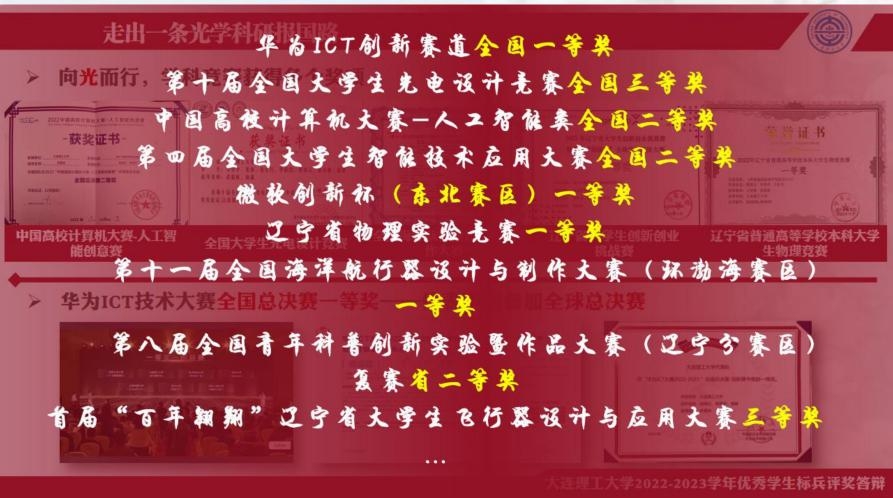 2023年10月,李昊宇获得校2022-2023学年优秀学生标兵(本科生)称号。对他来说,这既是一次好的总结,也是对过去自己努力的表彰。“这是光仪学院第一次有人站在标兵答辩的舞台上,我希望自己今后能对得起学院、大工的培养!”李昊宇坚定地说。