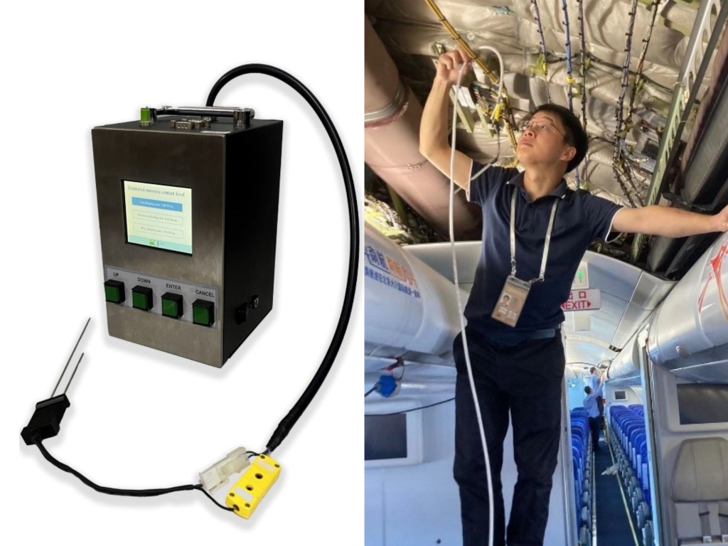 项目简介:本项目开发了便携双针探测器来监测飞机隔热层材料在飞行过程中或飞行后积聚的水分。测量时无需取出隔热层材料,将探针通过飞机内饰板之间的缝隙插入隔热层,根据温度响应推断出材料的含水量。该设备具备测试速度快,精度高,便携轻便,对酸碱成分抗干扰性能强等优点。该设备已用于空客和波音飞机隔热层含水量测试,指导了航空公司和飞机制造企业对隔热材料的科学设计和维护,延长了飞机的使用寿命,提高了飞行安全性和经济性。