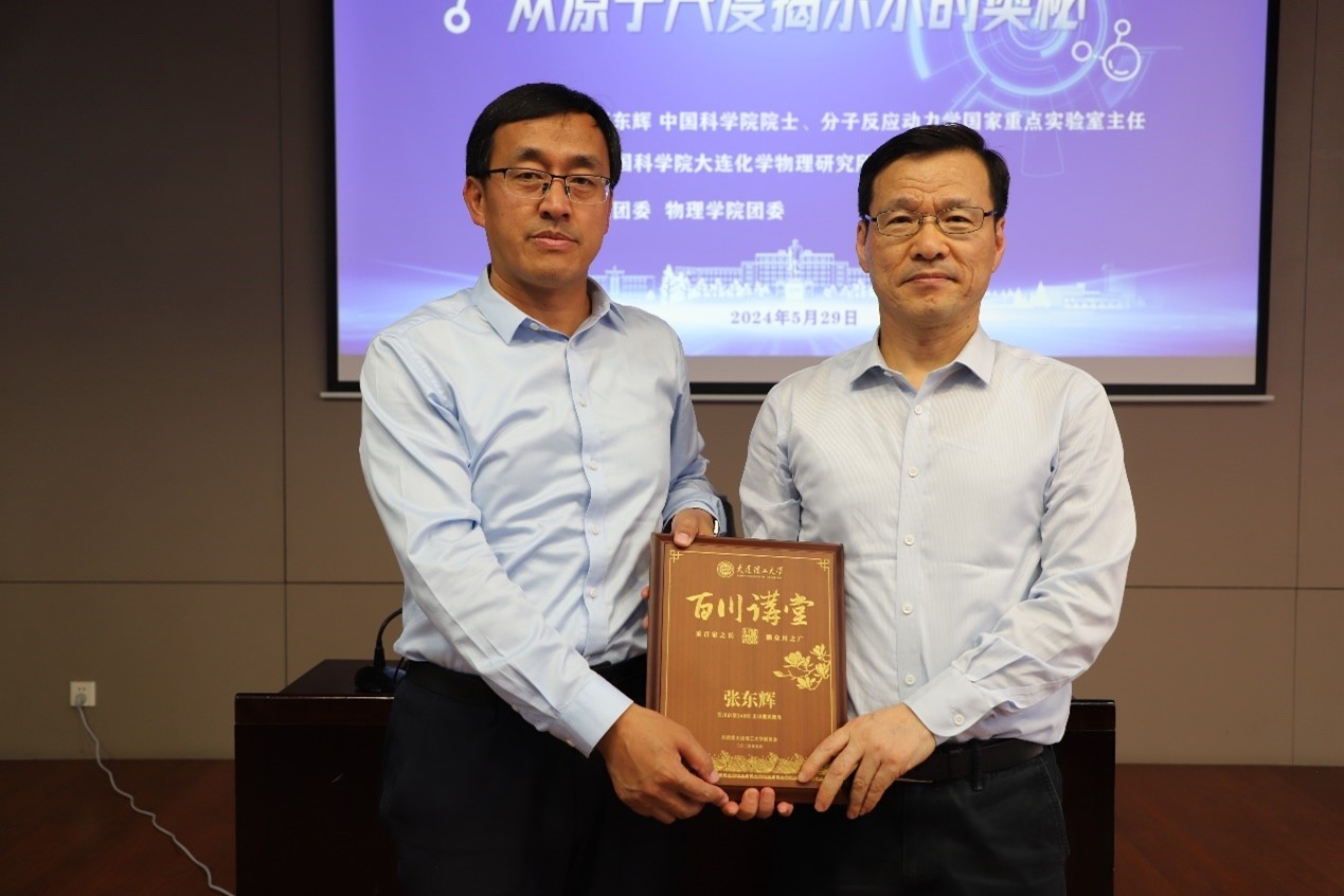 讲座最后,党委副书记、副校长张言军为张东辉颁发“百川讲堂”纪念牌,以表感谢。
