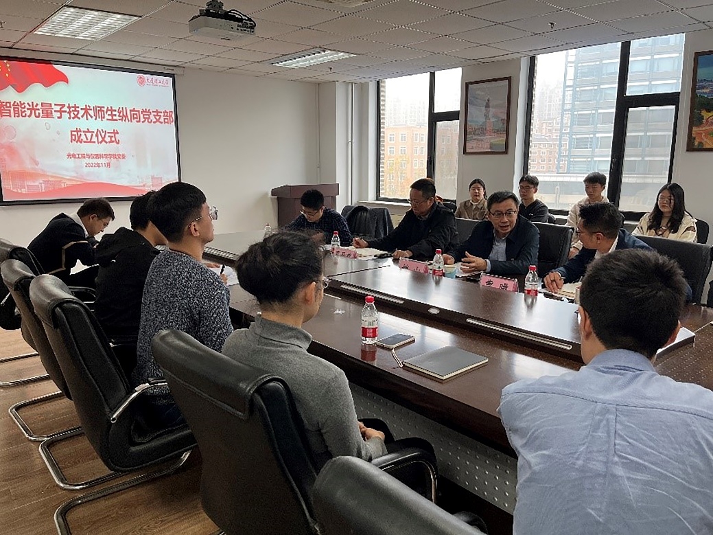 浇花浇根,育人育心。培养担当民族复兴大任的时代新人,“德”是首要,是方向。团队利用纵向党支部师生联系紧密的优势,引导学生立大志、明大德、成大才、担大任,以党建为重要抓手,组建“智能光量子技术师生纵向党支部”,与导学团队协同育人,利用专题党课进一步夯实理论根基,筑牢理想信念。