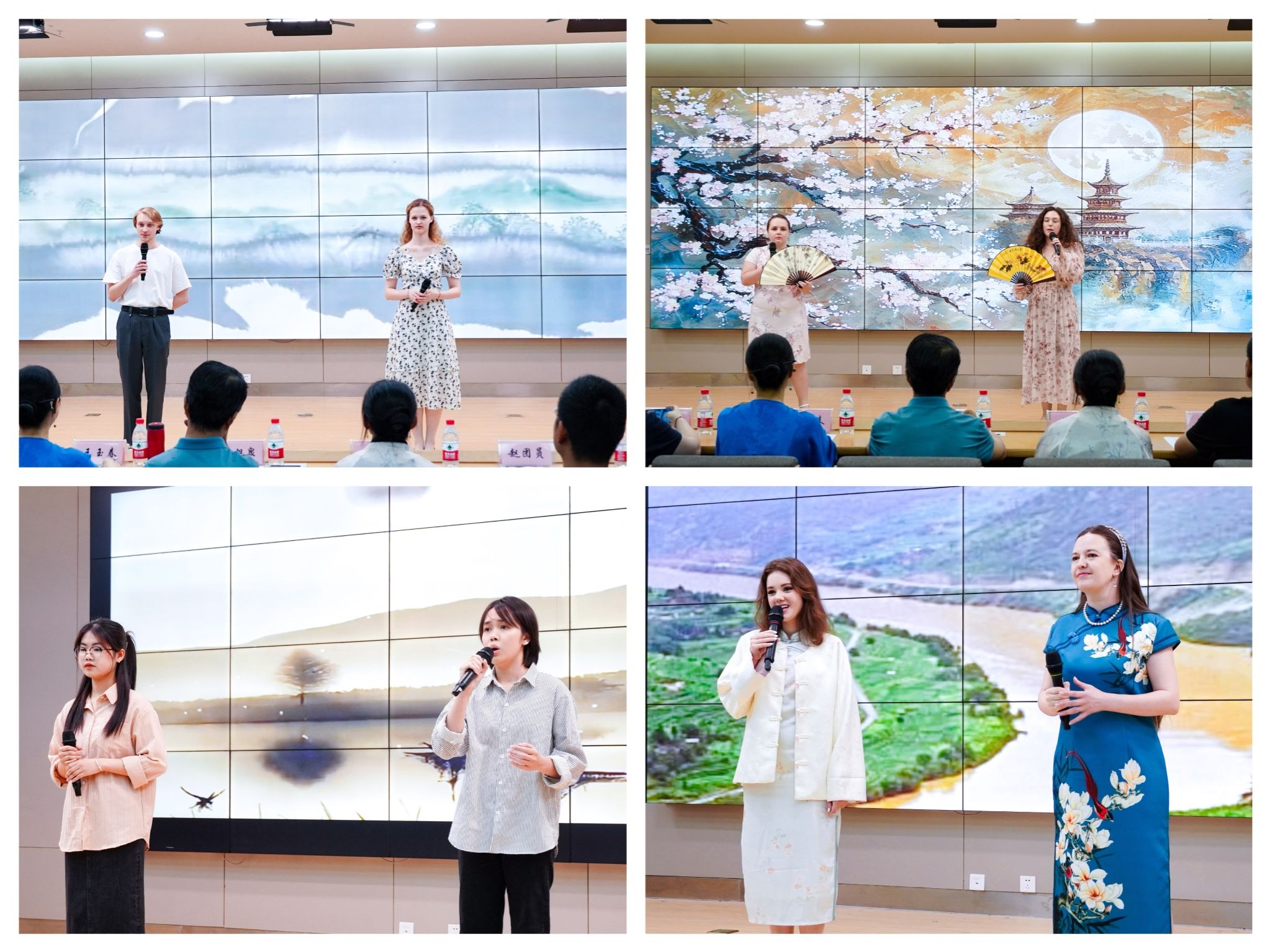 本次大赛首次设置了留学生组别,留学生选手们饱含深情地朗诵展现了对中国文化、中国精神的亲身体会与理解,《中国话》《致橡树》《声声慢》《如果有来生》等作品,得到评委老师的高度好评,也获得了在场学生的热烈掌声。
