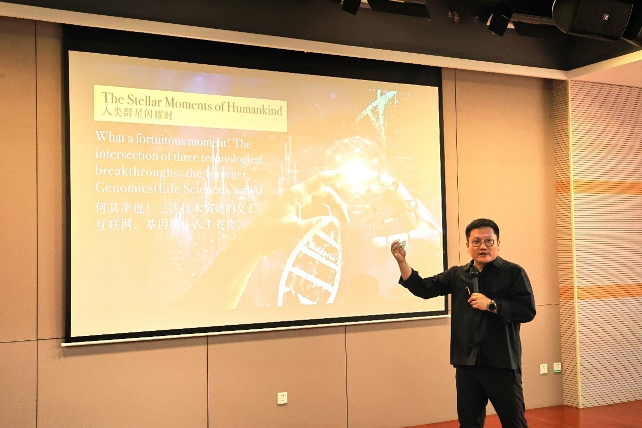 当前科技创新已成为国际战略博弈的主战场,新质生产力也成为建设现代化强国的重要支撑。讲座中,尹烨围绕个人求学经历和工作经历,结合一个个生动具体的案例,全面回顾了生命科学、互联网、人工智能三大领域的发展历史,深度解读了当下AI与BT融合发展的前沿热点。尹烨表示,250年来,人类社会的大机遇和技术峰谷高度相关,而互联网、基因组、人工智能这三种技术突破的交汇,注定21世纪是生物技术大有可为的时代,在AI+BT时代,我们的最终目标是让科技造福每一个人。