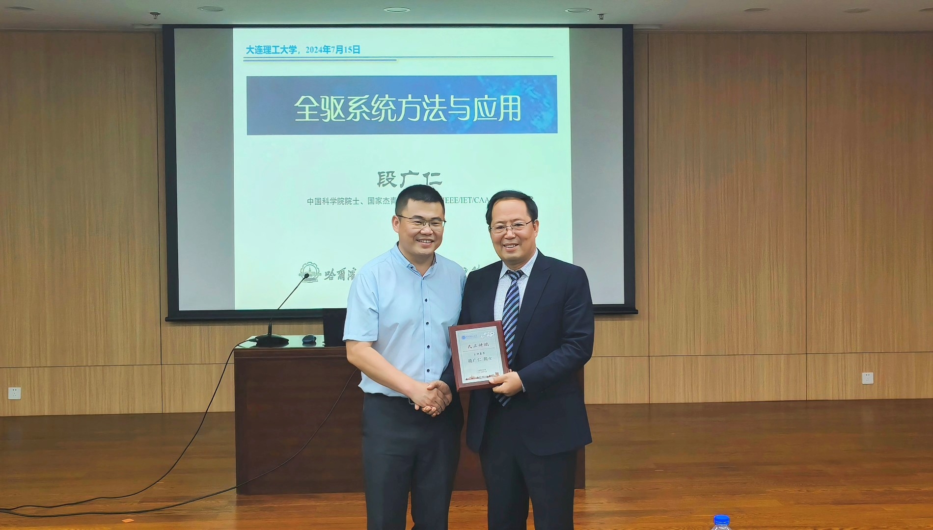 7月15日上午,中国科学院院士、哈尔滨工业大学控制理论与制导技术研究中心名誉主任段广仁做客“大工讲坛“,围绕“全驱系统方法及应用”主题作报告。副校长王博出席报告会,并向段广仁院士赠送“大工讲坛”纪念牌。控制科学与工程学院院长吴玉虎教授主持报告会。