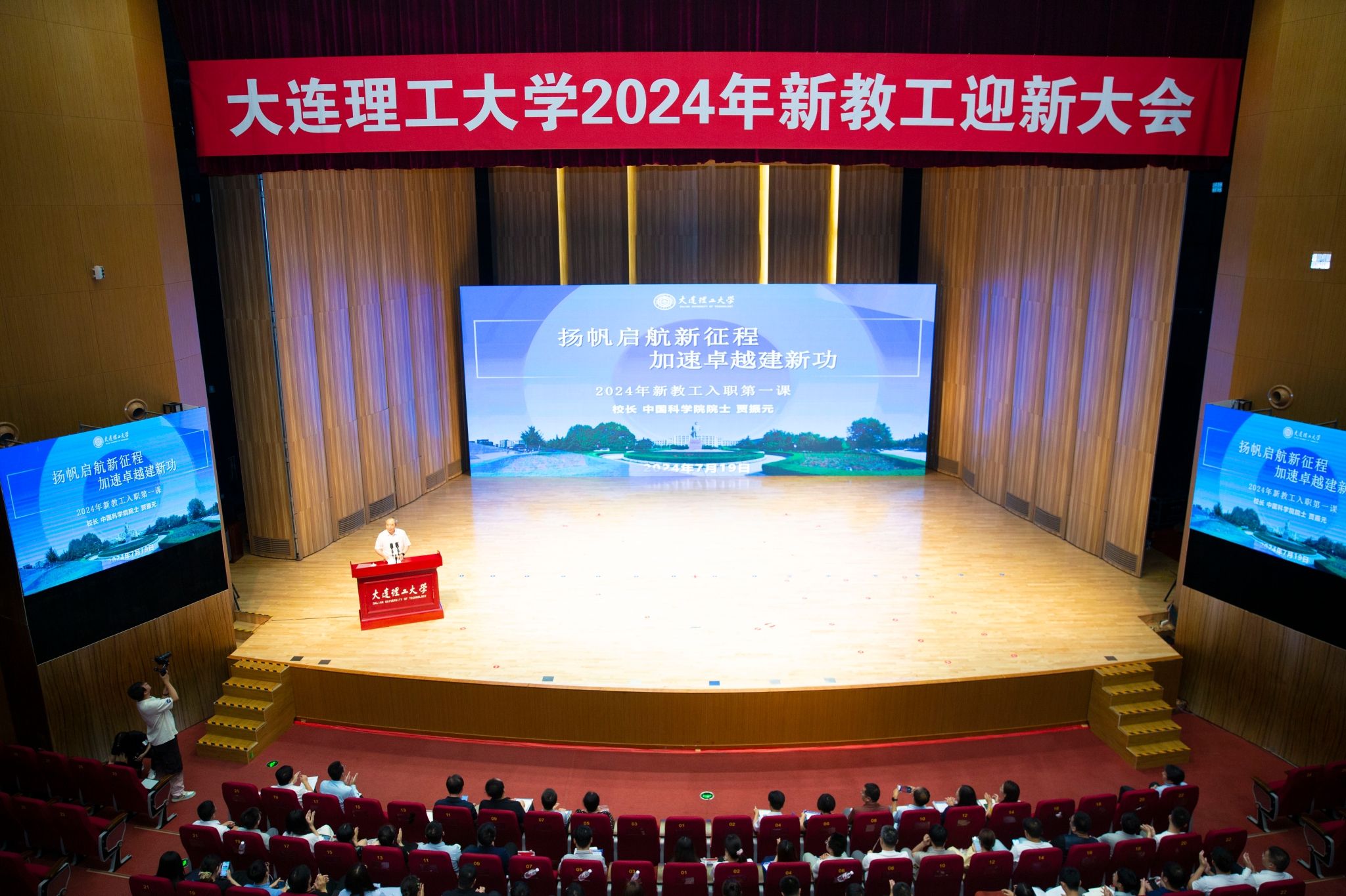 7月19日,学校举行2024年新教工迎新大会,欢迎新教工成为大工新成员。贾振元校长出席大会,为新教工代表颁发入职证书,并通过入职第一课与新教工交流,提出共同加速卓越的期许。学校党政办公室、学校纪检监察机构、党委保卫部、人力资源处、研究生院、教务处、科学技术研究院、保密工作办公室、国际合作与交流处、财务处、网络与信息化中心等机关职能部门同志参加会议。教师发展中心主任杨文超主持会议。