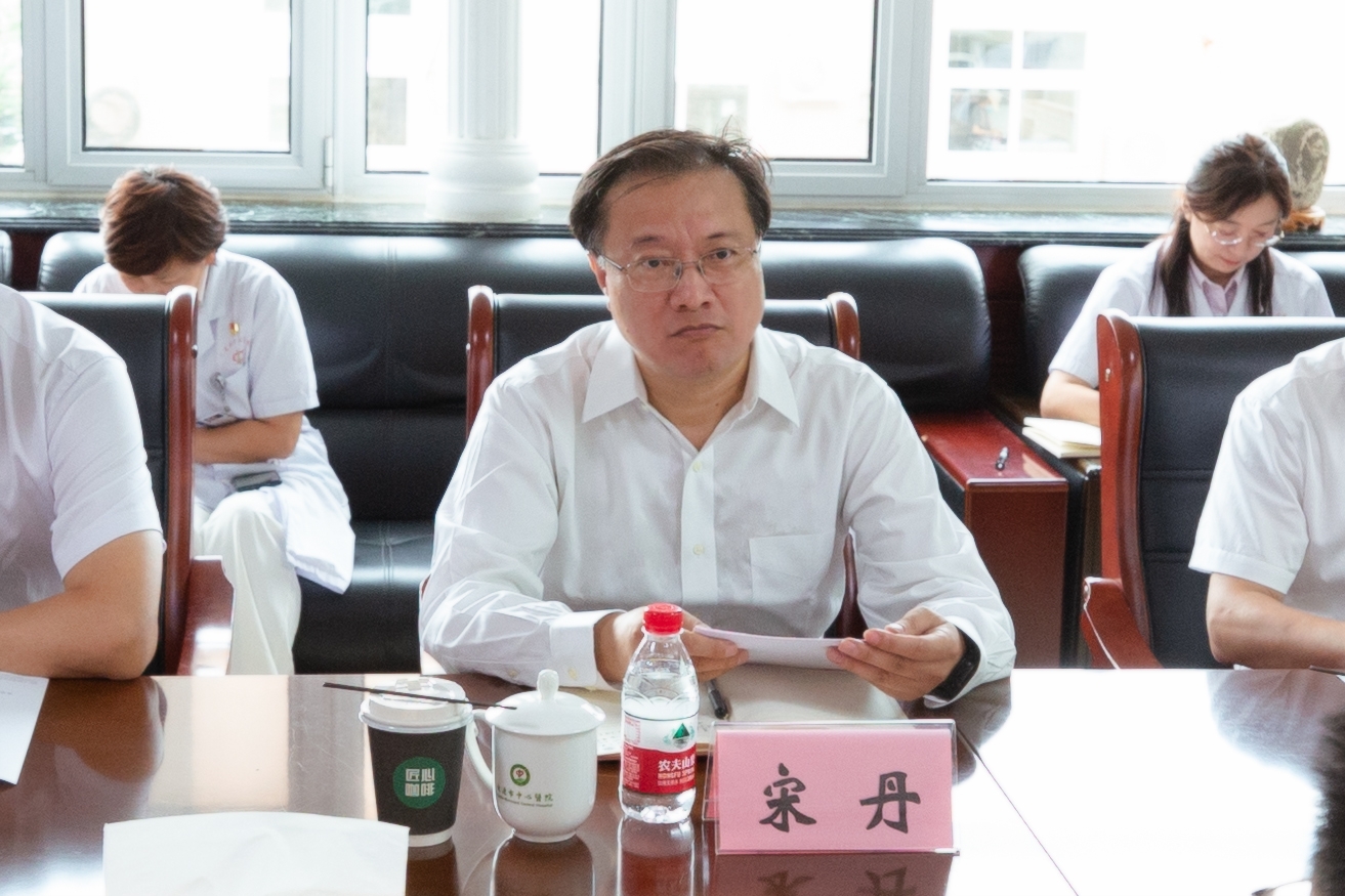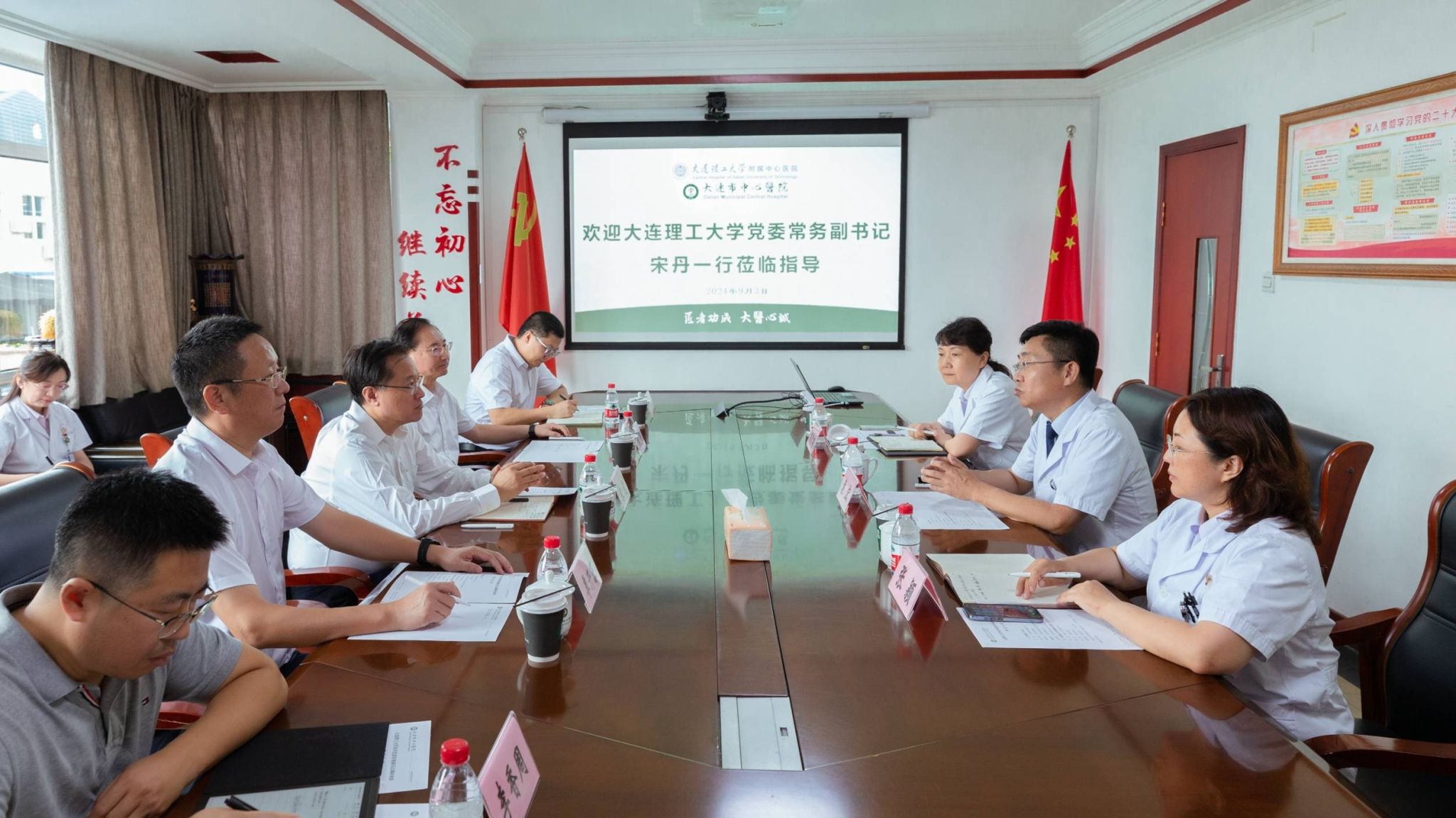慰问活动后,宋丹一行与中心医院领导班子及相关部门负责人进行了座谈,就中心医院作为大学直属附属医院如何高质量发展和做好临床医学学科建设展开深入研讨。宋丹代表大连理工大学党委充分肯定了附属中心医院在高质量发展进程中取得的成绩,对医院的未来发展前景充满信心。他表示,附属中心医院作为大连理工大学的重要组成部分,与大学应建立紧密的共融共生关系,大学会大力加强对医院的支持,确保医院在发展上符合学校的总体规划和战略目标,附属医院承担着医学教育和科研的重要责任,是大学医学研究成果转化的重要平台,也体现在文化传承和社会责任上。双方要积极推进医工交叉合作项目,大力加强高水平人才的引进,高度重视医学研究与成果转化,通过相互协作,实现互利共赢。他强调,双方应建立良好的工作机制,加强沟通交流,及时解决合作中出现的问题。他希望附属中心医院能够在高质量发展的道路上加速前行,进一步助力大连理工大学一流大学建设,更好地为广大市民提供优质医疗服务,为健康大连贡献更大力量。