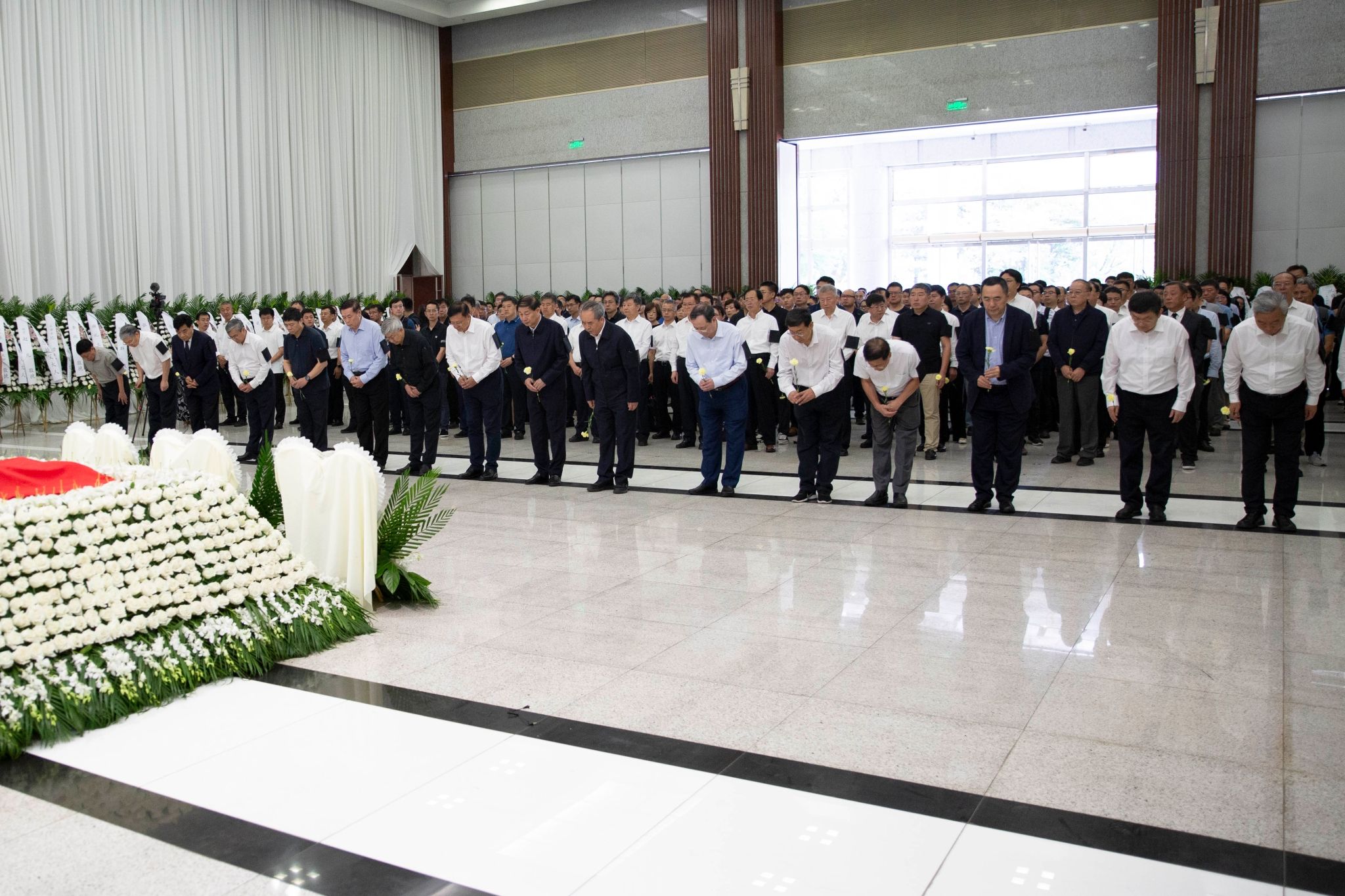 校党委书记项昌乐介绍孔宪京院士生平。校长贾振元主持告别仪式。哀乐声中,大家怀着沉痛的心情肃立默哀,向孔宪京院士遗体鞠躬致敬、献花送别。