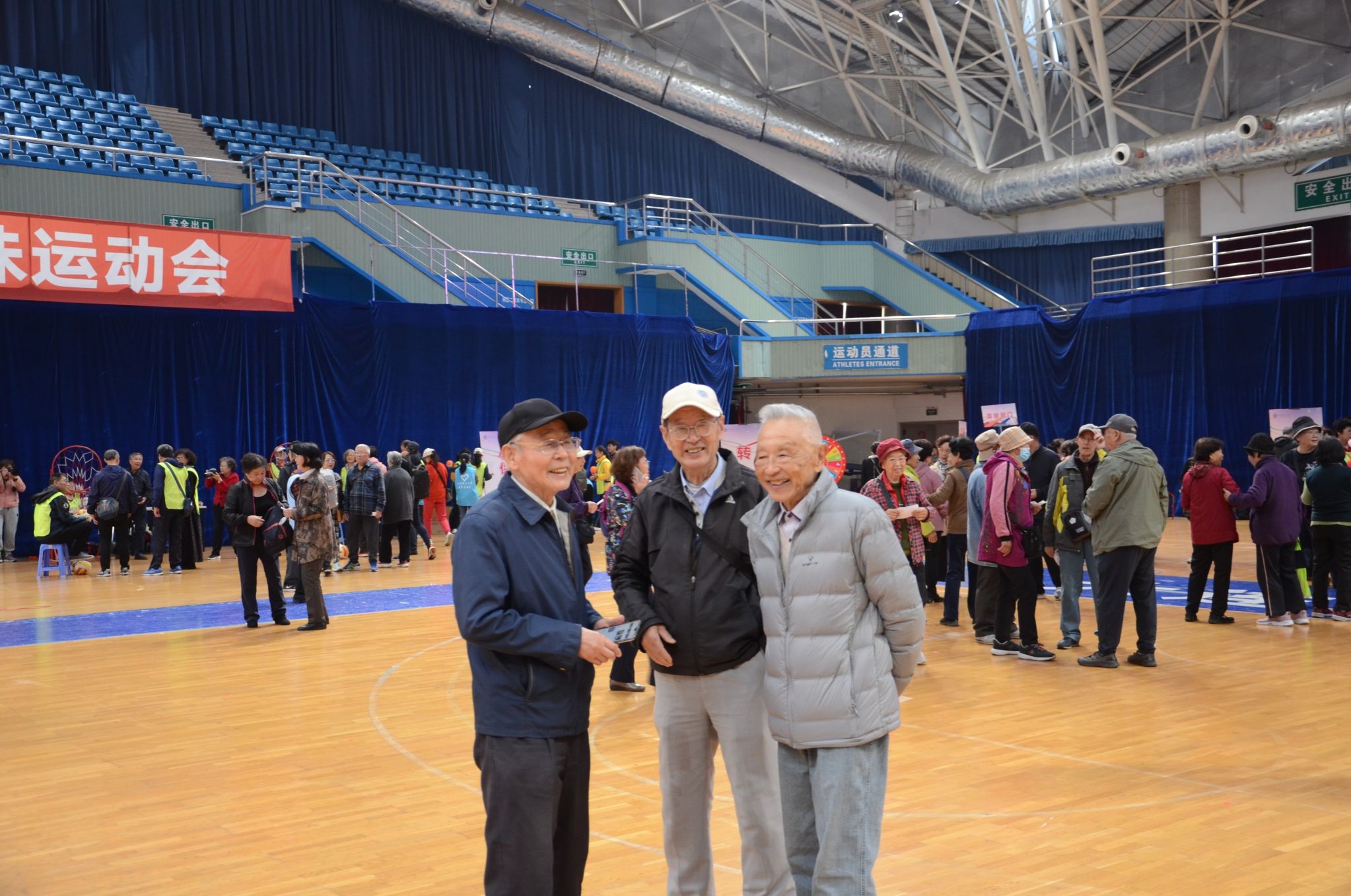 场下老同志们互致问候,关心彼此的健康,关注学校发展事业,趣味运动之外体现温情融融。