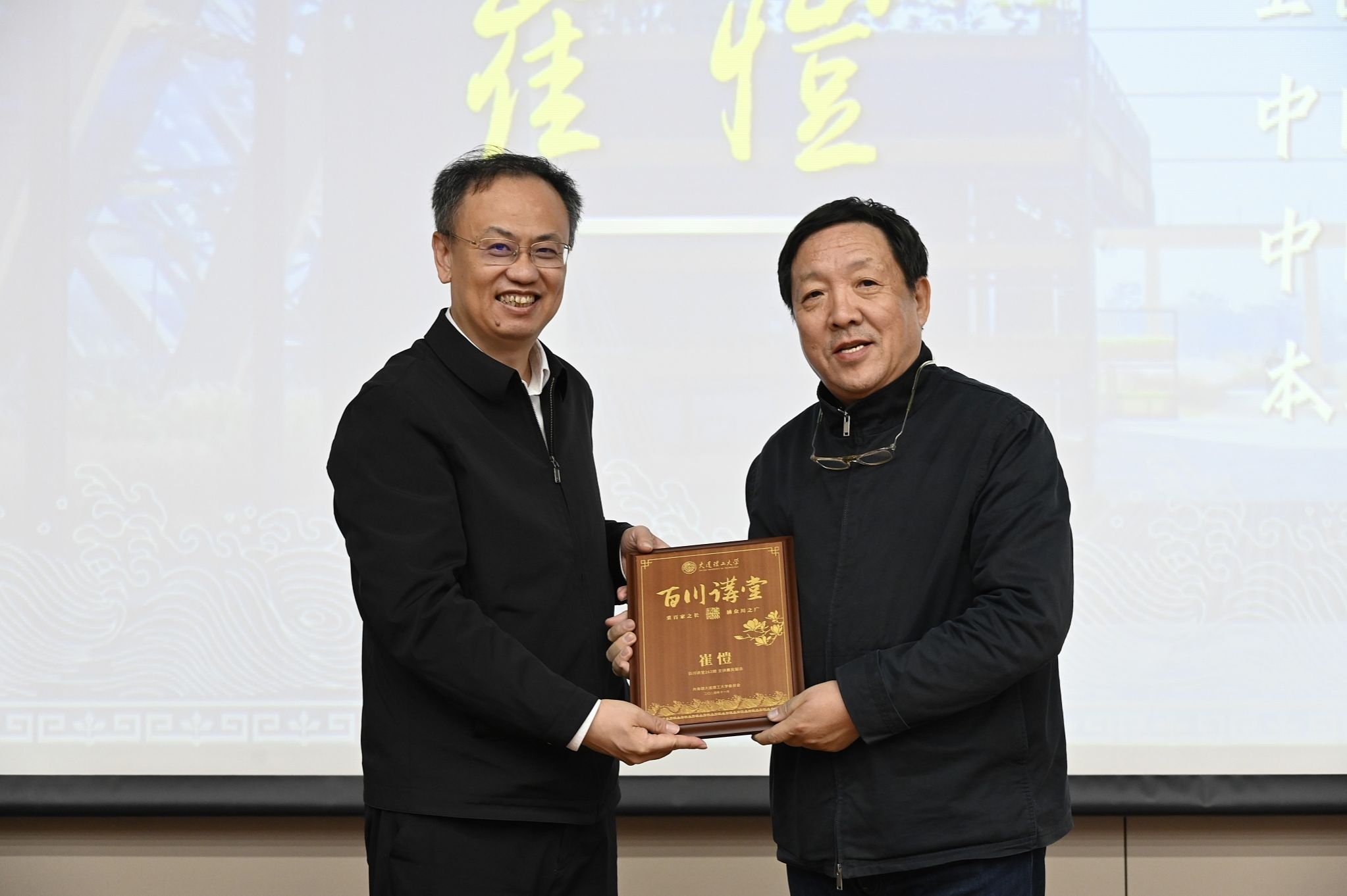 讲座开始前,张驰发表致辞,对崔愷的到来表示热烈欢迎和感谢,并代表学校向崔愷颁发“百川讲堂”纪念牌。