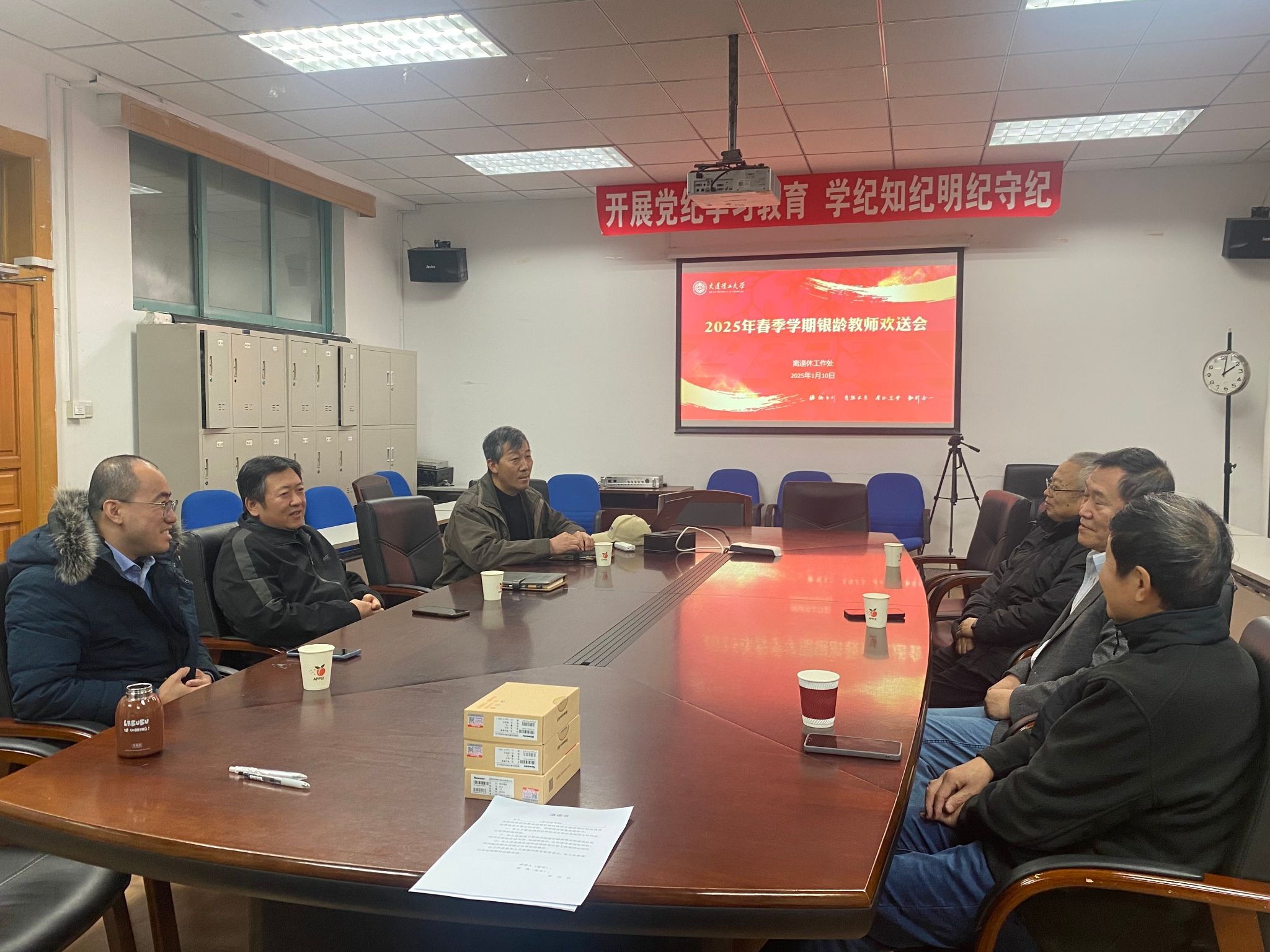 1月10日,离退休工作处举行2025年春季学期银龄教师欢送会。离退休党委书记、处长刘宇彤,副书记、副处长杨峰和退休工作办公室工作人员及下学期派出的银龄教师参加了本次座谈会。