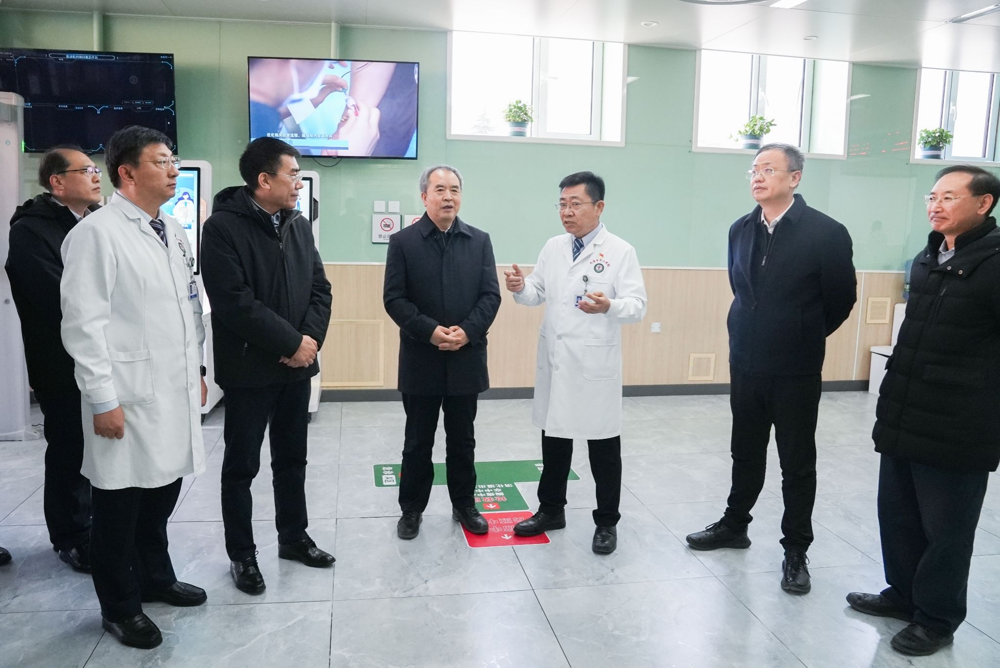 1月19日下午,在新春佳节来临前夕,校长贾振元率队来到附属中心医院,实地了解医院整体建设现状,就推动医院高质量高水平发展与医院干部职工展开座谈,代表学校看望慰问医护人员,并向他们送上新春祝福。市卫健委党组书记王聚、副主任邢军,校党委常务副书记宋丹,副校长张弛,研究生院、教务处、医学部以及附属中心医院相关负责人陪同调研。