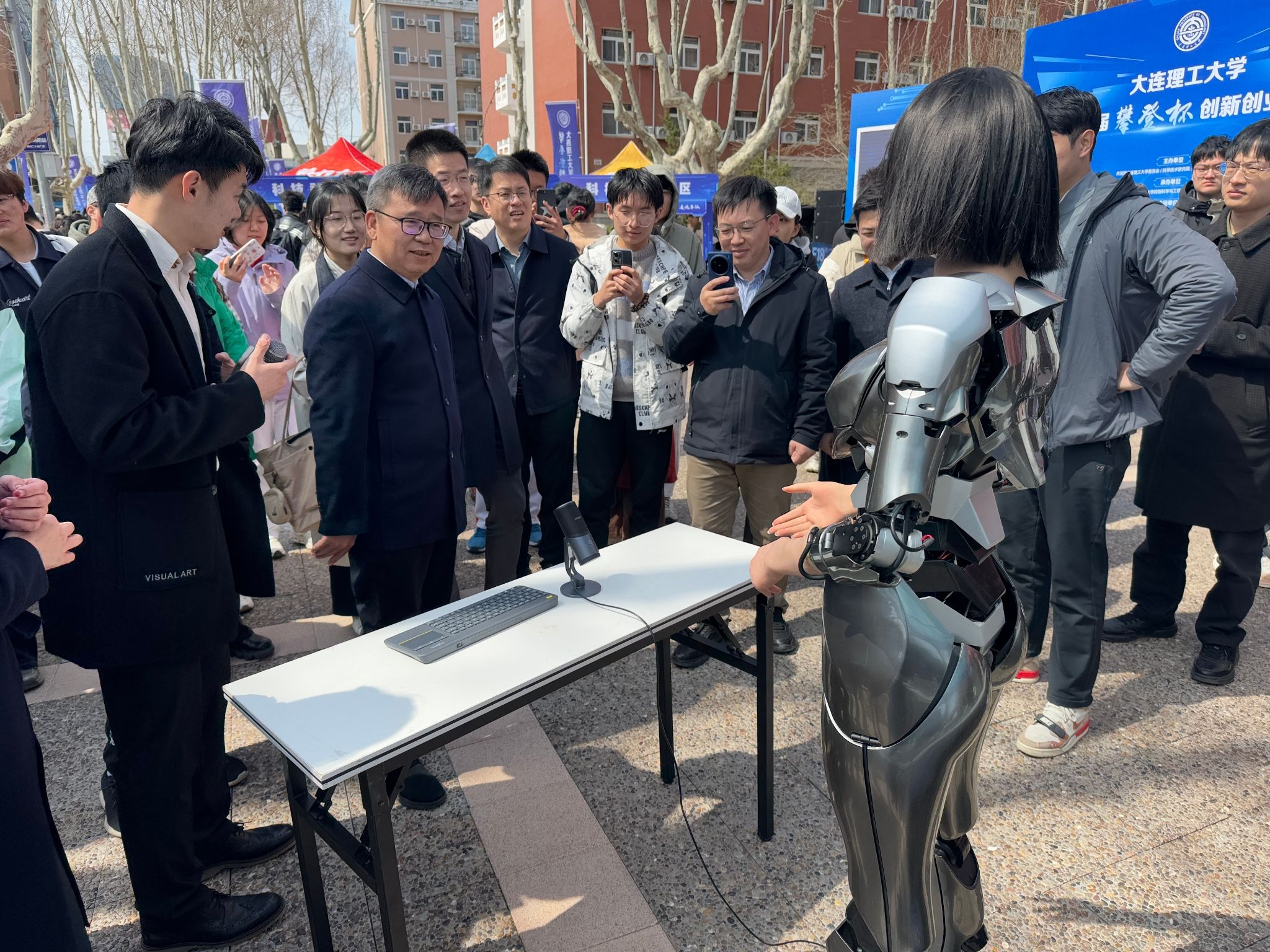 “春晚”同款的宇树科技机器人穿梭人群牵手交流;学生自研的倾转式垂直起降飞行器凭借创新设计突破飞行局限;仿生机器鱼耦合声、光、电等诱鱼因子,开拓鱼类洄游新思路;往届“挑战杯”金奖项目团队重返舞台展示风采……3月28日,第二十一届“攀登杯”创新创业竞赛决赛在西山生活区启幕,150支入围决赛的团队在路演现场面向评委激情澎湃地介绍项目。同期,特色科技展区各类前沿设备与互动装置集中亮相,以实物展演、科技体验等形式,为师生打造了一场创新科技盛会。