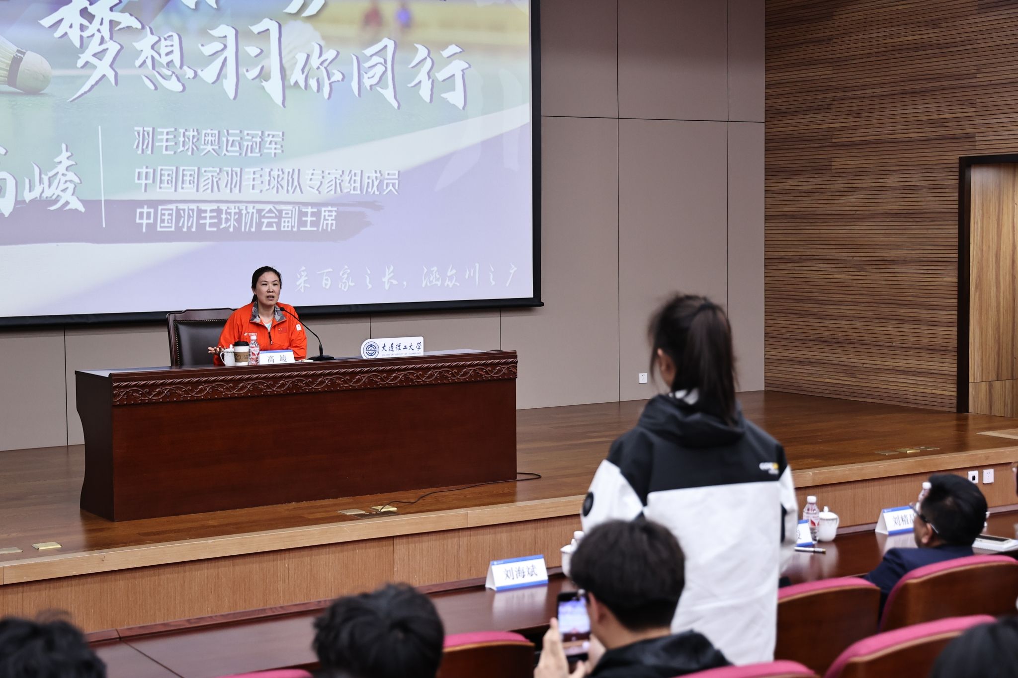 “每天进步一点点,你就会积累得很多了。”高崚首先讲述了自己如何走上羽毛球之路并成长为两届奥运会冠军的经历。她强调,运动员时期对基本功的严苛要求和日积月累的训练,不仅帮助她在高强度赛事中保持稳定状态,更铸就了强健体魄与坚韧意志。同时,通过讲述中国羽毛球队的光荣历史与冠军背后的励志故事,她向在场师生阐释了中华体育精神的核心内涵。
