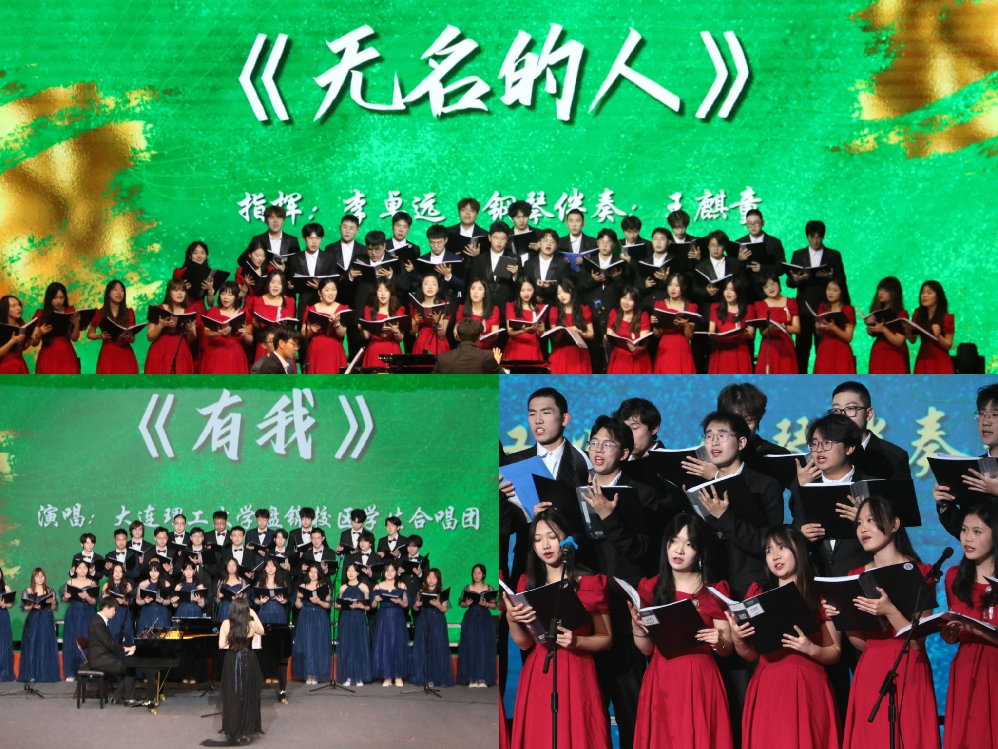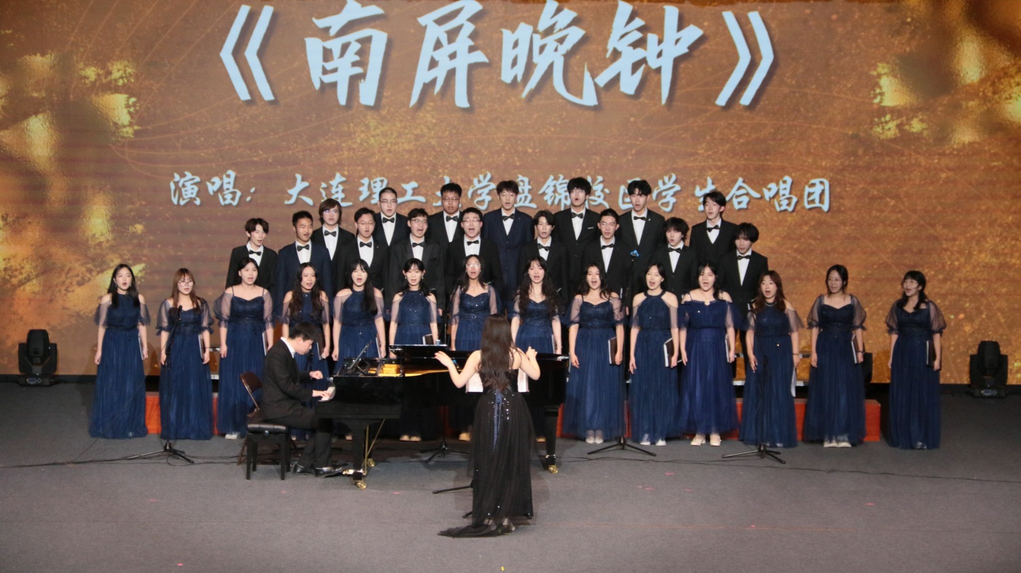 音乐会以歌曲《千山万水》拉开序幕,经典旋律在合唱团员们的激情演绎中焕发新声,传递跨越时空的奋进力量。指导教师李金波指挥的《蒲公英》和《萱草花》以细腻和声描绘青春诗意,盘锦校区学生合唱团首次登台献唱《南屏晚钟》《有我》,两个校区在悠扬的歌声中多元融合。