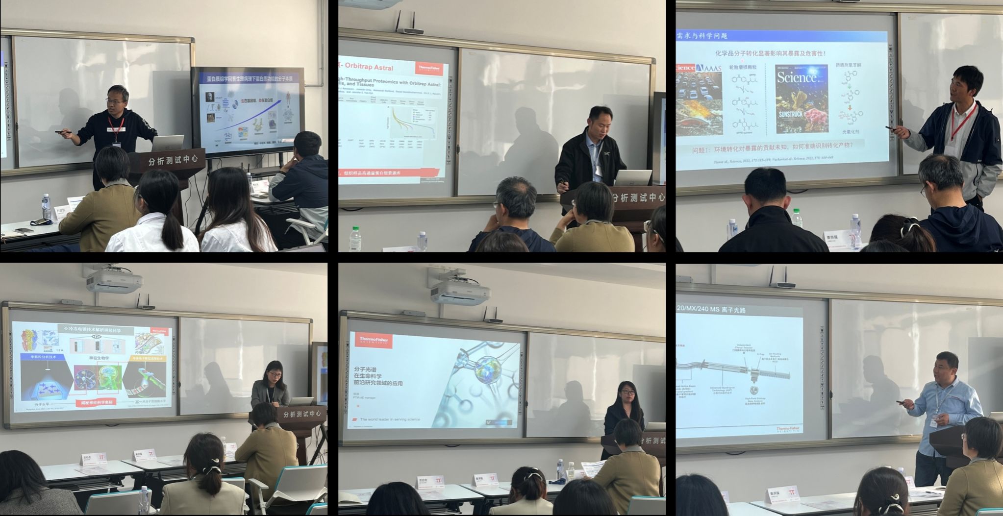 我校分析测试中心主任闫肃作题为《高校公共平台的建设与运行管理实践》的报告,来自清华大学的陈晓、谢红波、万慧慧分别以《限域小分子原子尺度结构成像》《球差校正HAADF-STEM技术在镁合金微结构表征中的应用》《色谱质谱技术在复杂样品分析中的平台构建与案例分享》为题作报告。