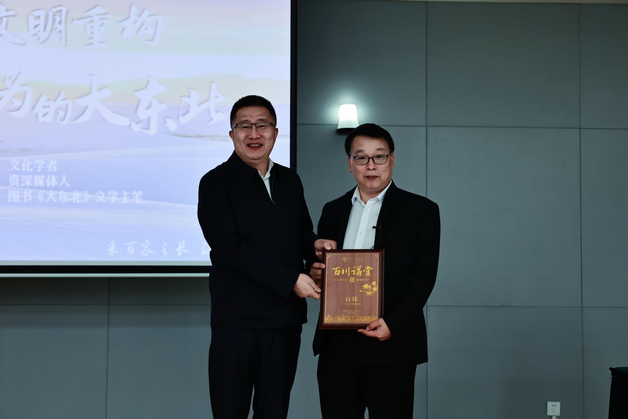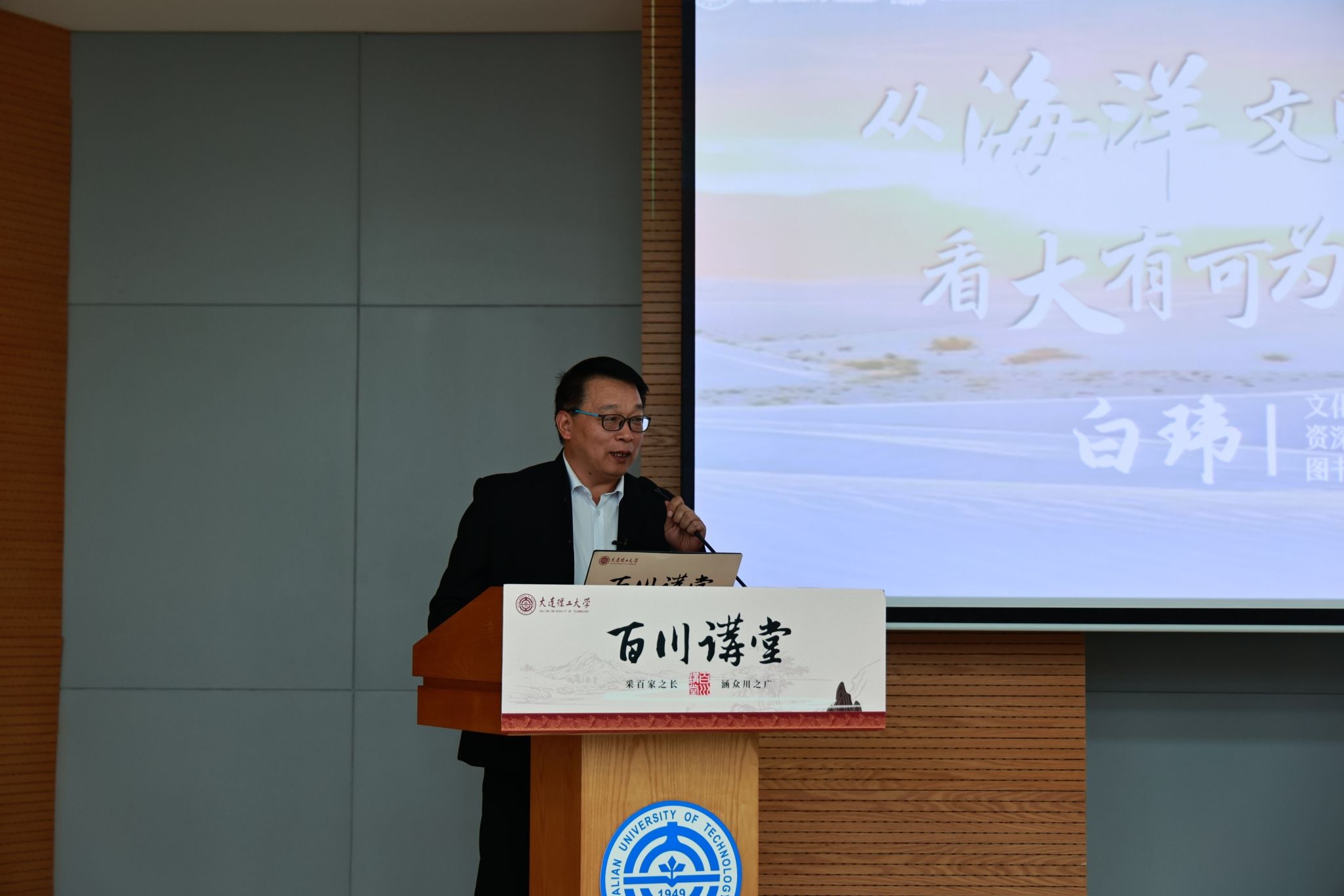 在“东北振兴”的时代号角下,这片黑土地正经历着转型与新生的蜕变。5月10日,诗人、文化学者、资深媒体人、融媒体图书《大东北》文学主笔白玮老师做客“百川讲堂”第272期,带来主题为《由海洋文明重构看大有可为的大东北》主题讲座。党委常委、宣传部部长韩轶,校团委教师代表,辽宁人民出版社相关人员,各学院、各书院的青年学生、新疆班学员以及百川会员共计150余人到场聆听讲座。